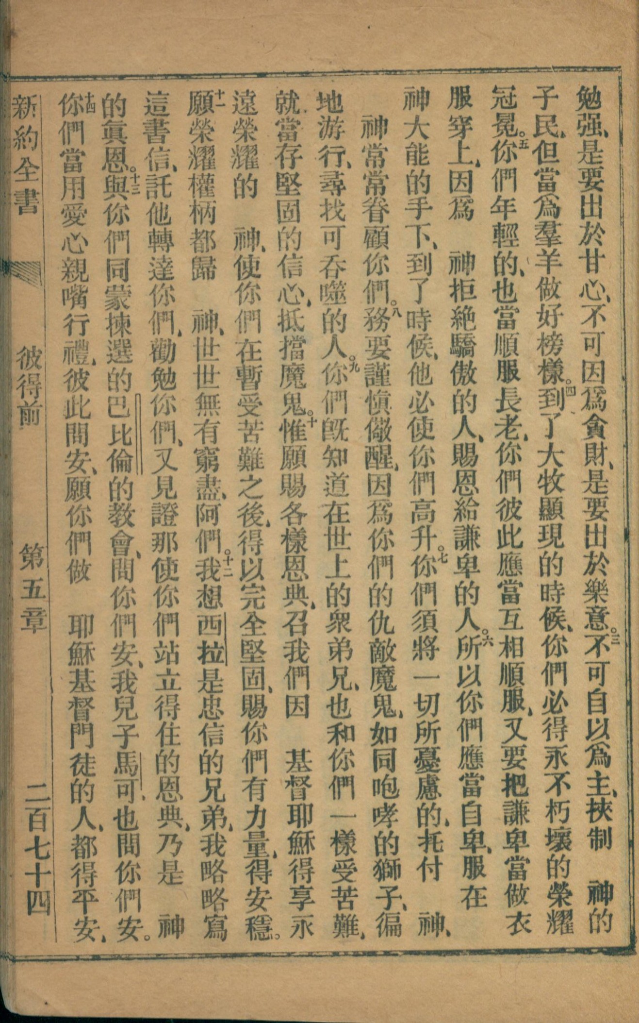 1872年官話新約全書 彼得前書 5 章 3 節到 5 章 14 節