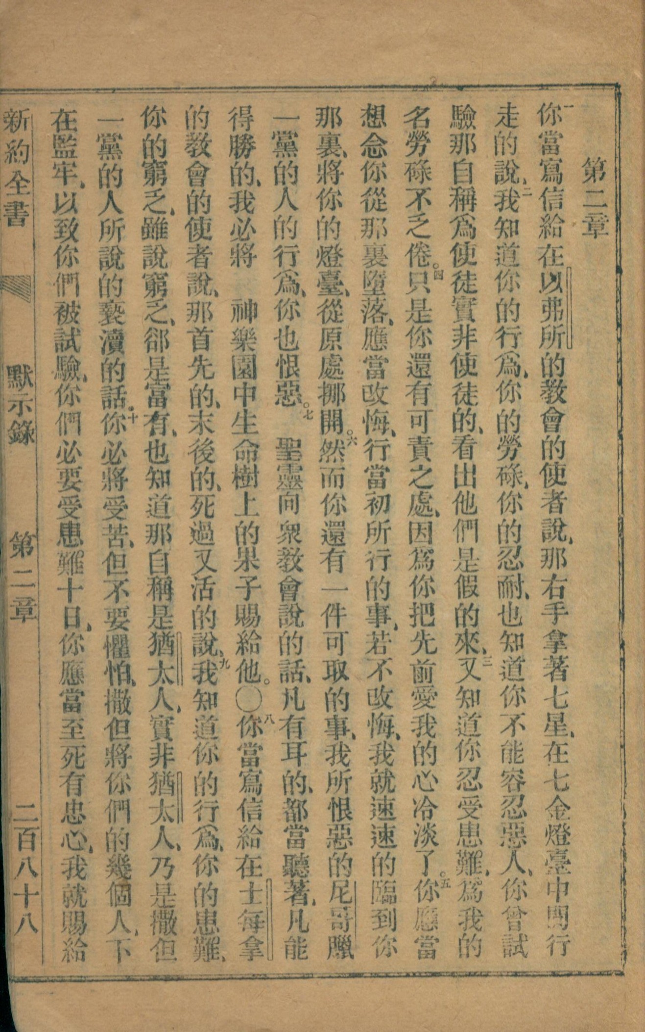 1872年官話新約全書 啟示錄 2 章 1 節到 2 章 10 節