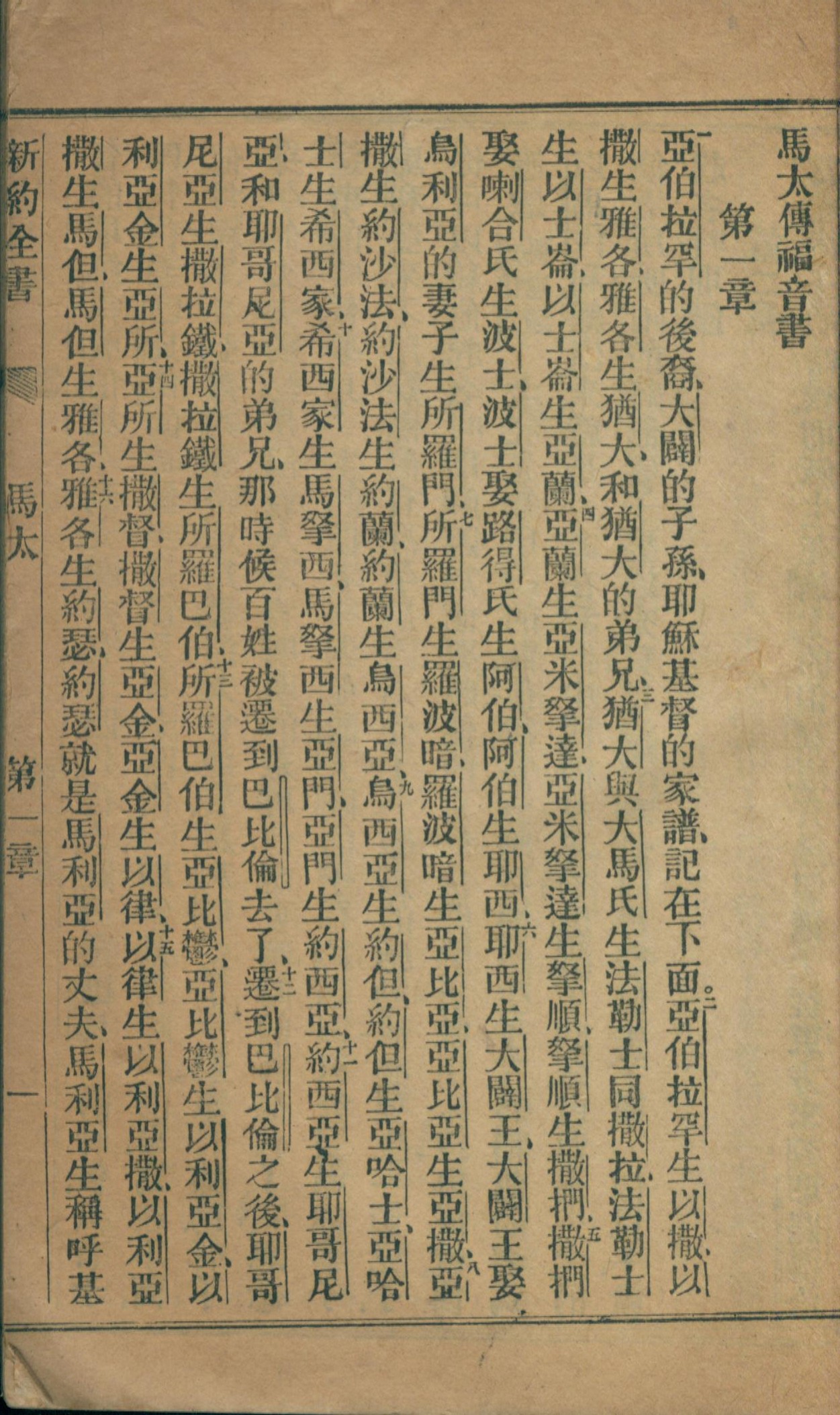 1872年官話新約全書 馬太福音 1 章 1 節到 1 章 16 節