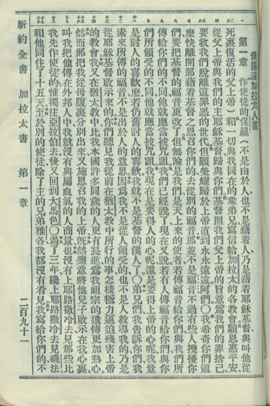 1951年新約全書 加拉太書 1 章 1 節到 1 章 20 節