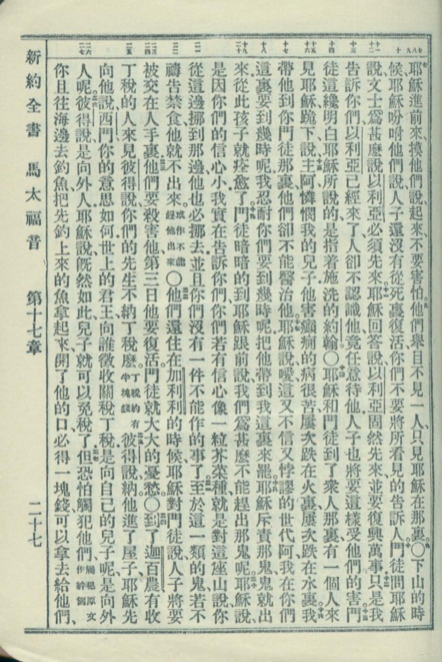 1951年新約全書 馬太福音 17 章 7 節到 17 章 27 節