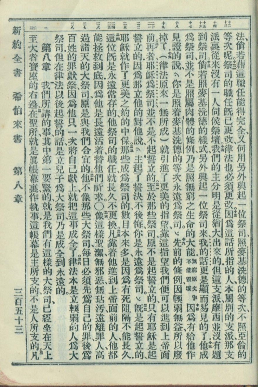 1951年新約全書 希伯來書 7 章 12 節到 8 章 3 節