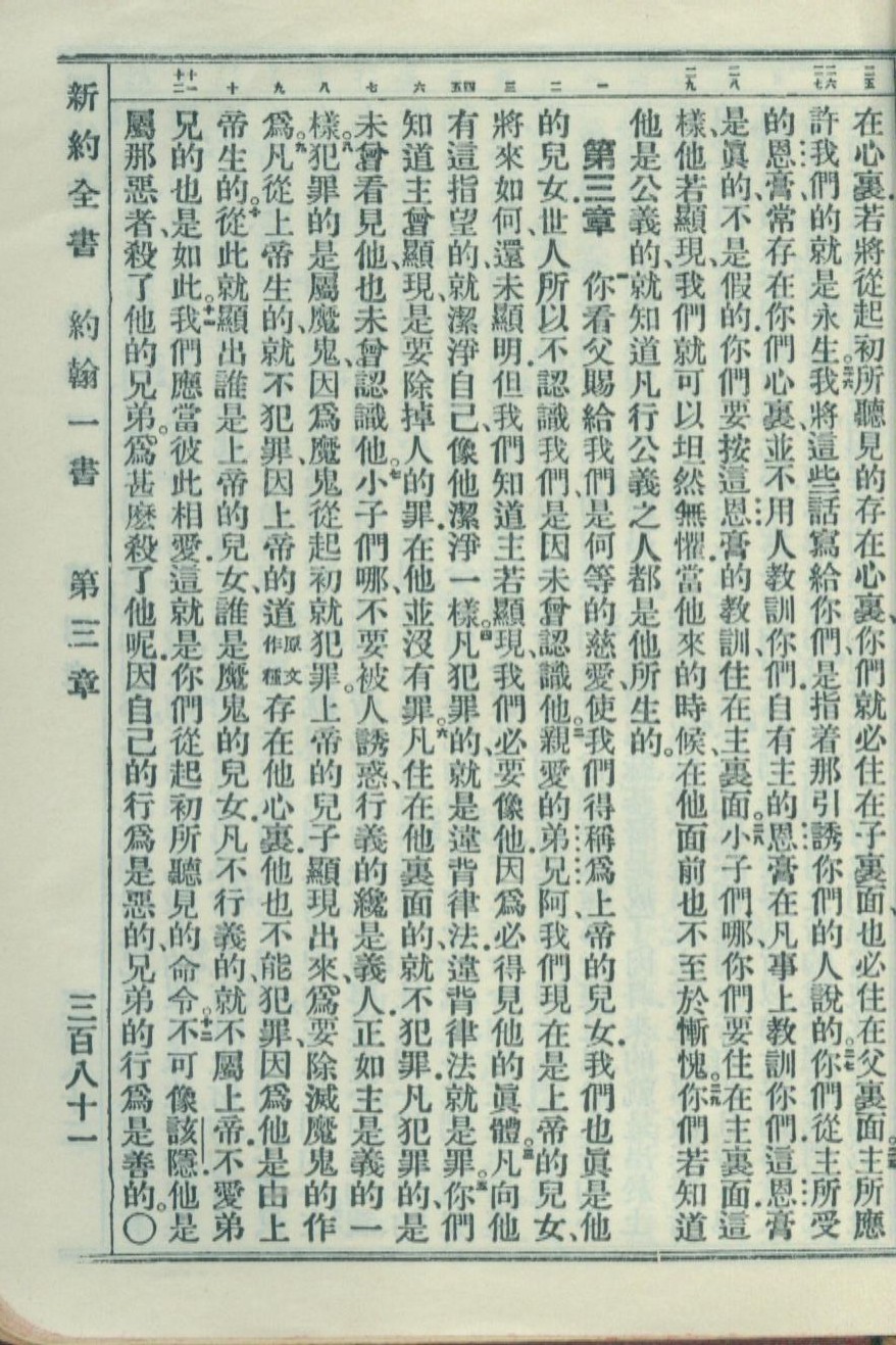 1951年新約全書 約翰一書 2 章 25 節到 3 章 12 節