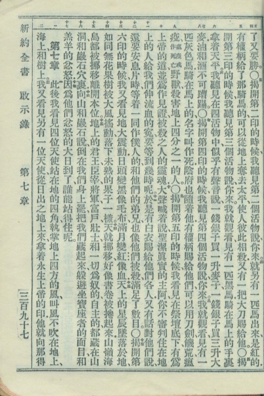 1951年新約全書 啟示錄 6 章 3 節到 7 章 2 節