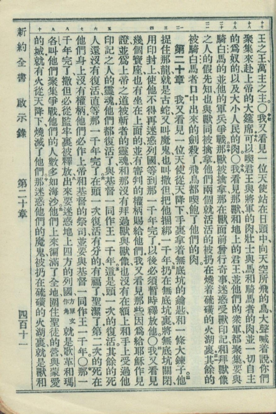 1951年新約全書 啟示錄 19 章 17 節到 20 章 10 節