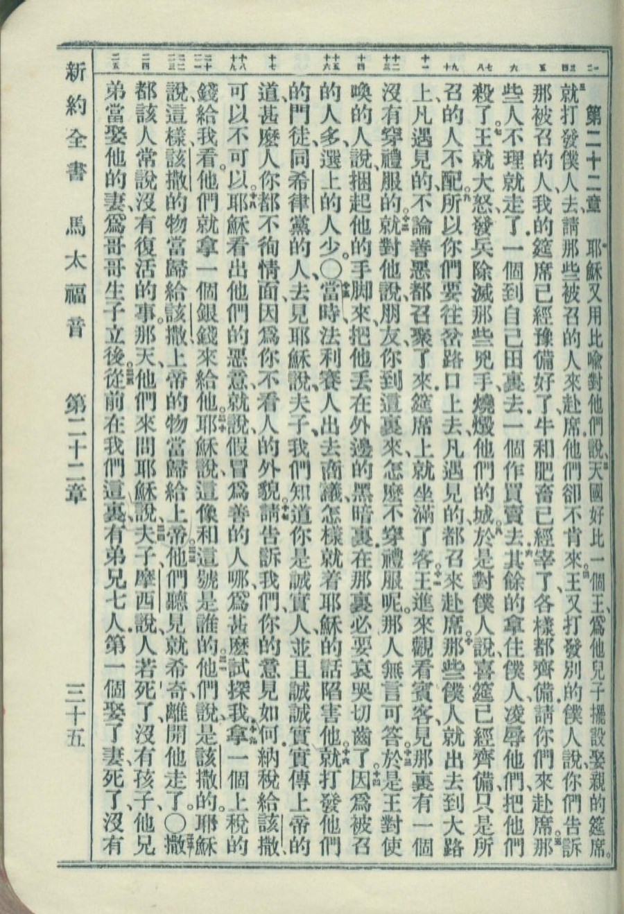 1951年新約全書 馬太福音 22 章 1 節到 22 章 25 節