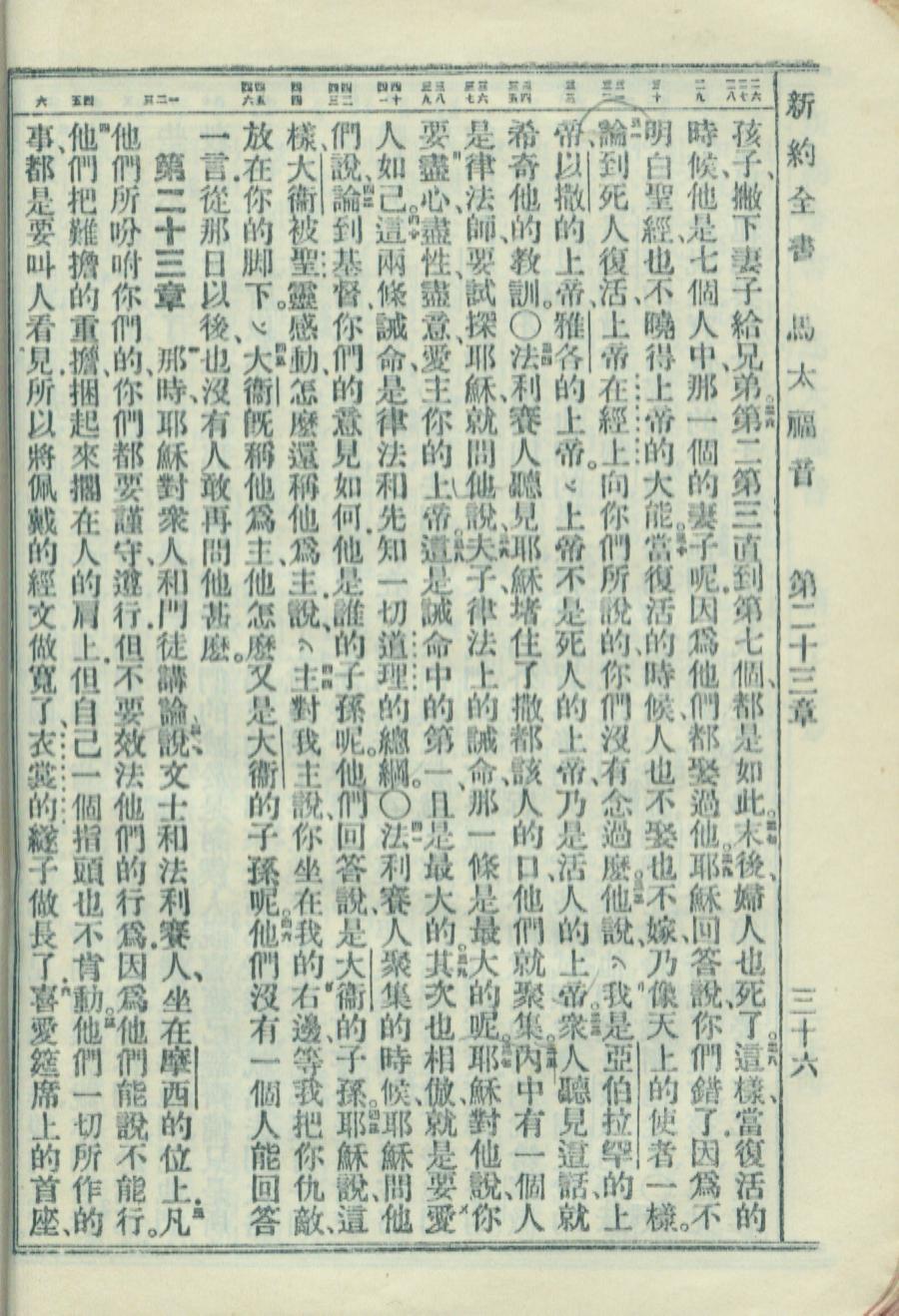 1951年新約全書 馬太福音 22 章 26 節到 23 章 6 節