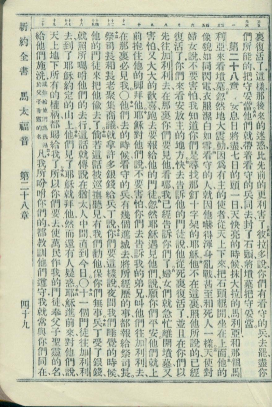 1951年新約全書 馬太福音 27 章 65 節到 28 章 20 節