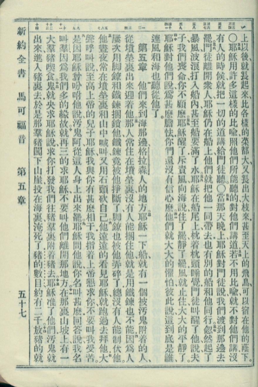 1951年新約全書 馬可福音 4 章 33 節到 5 章 14 節