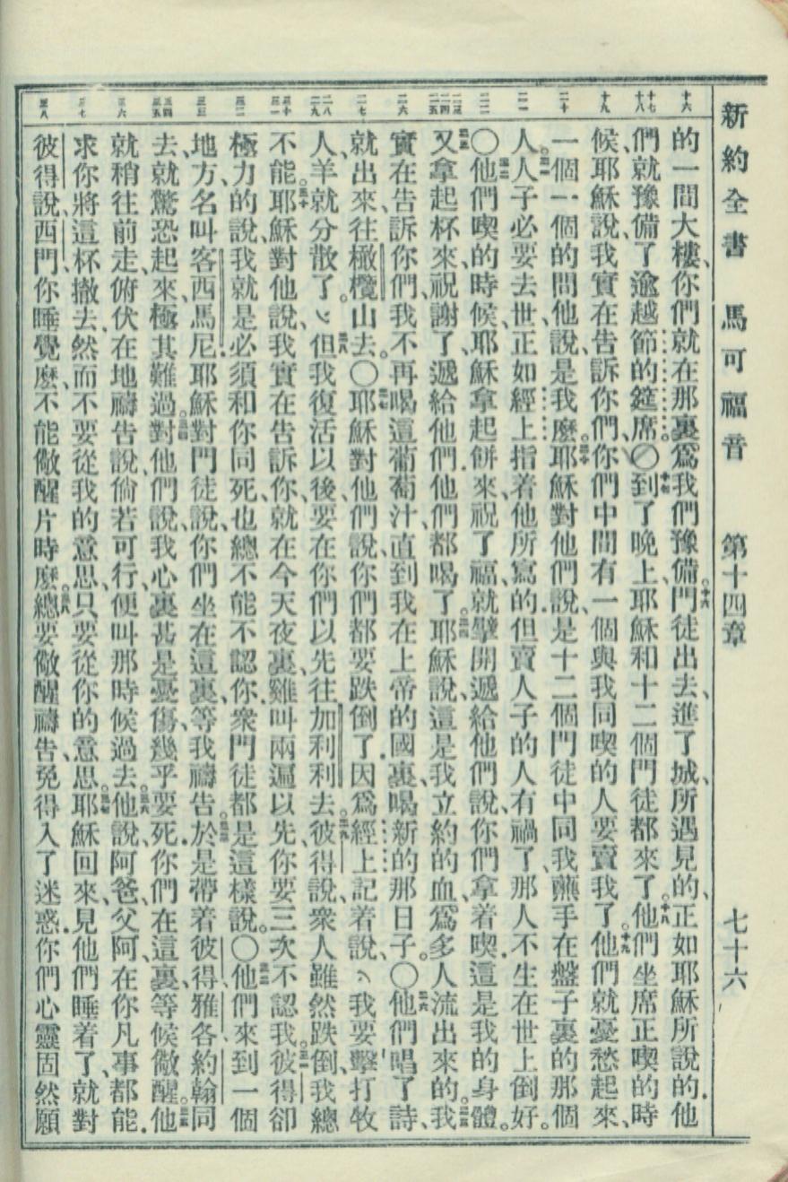 1951年新約全書 馬可福音 14 章 16 節到 14 章 38 節
