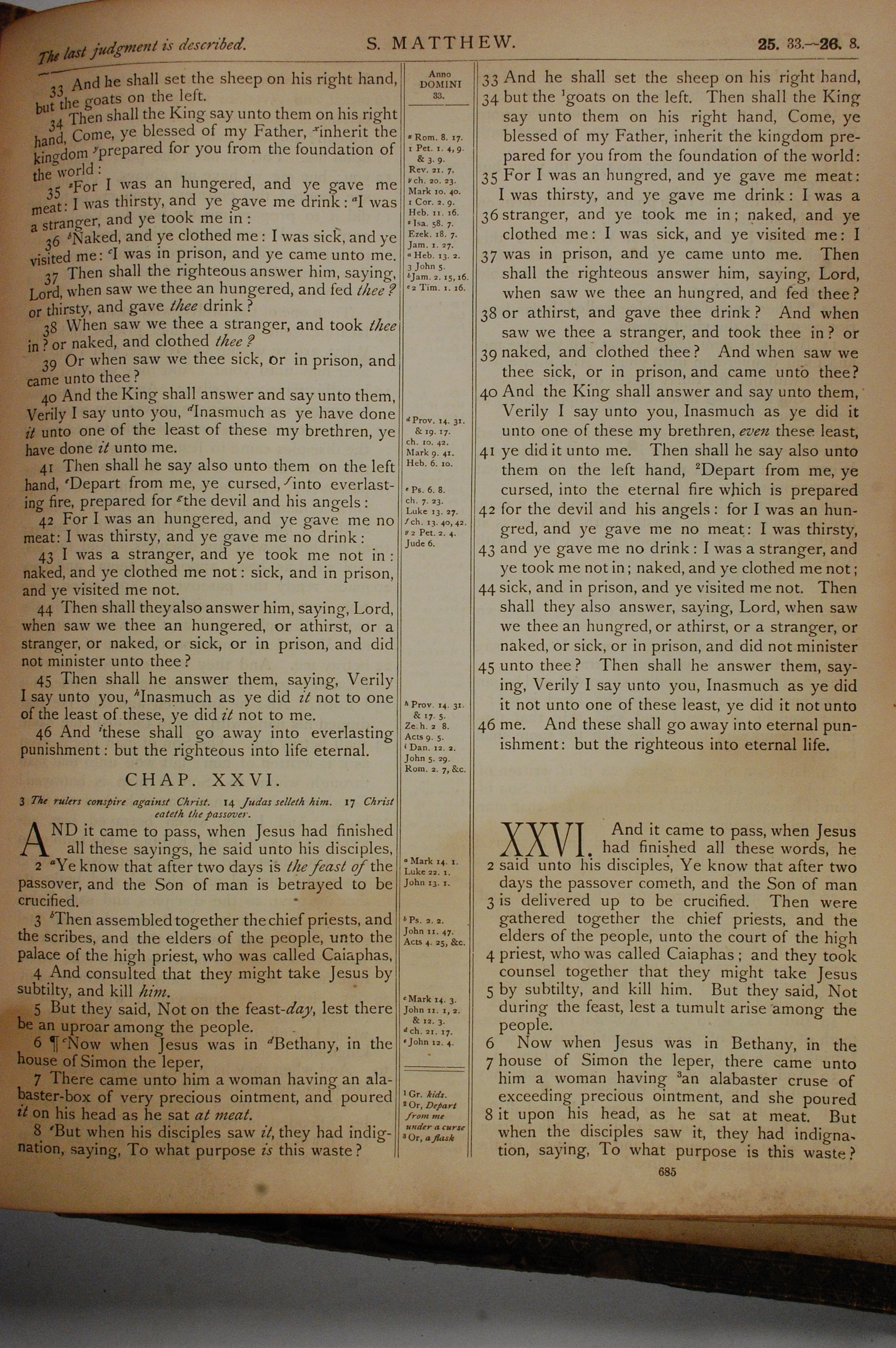 1884年The Holy Bible: Old and New Testaments 馬太福音 25 章 33 節到 26 章 8 節