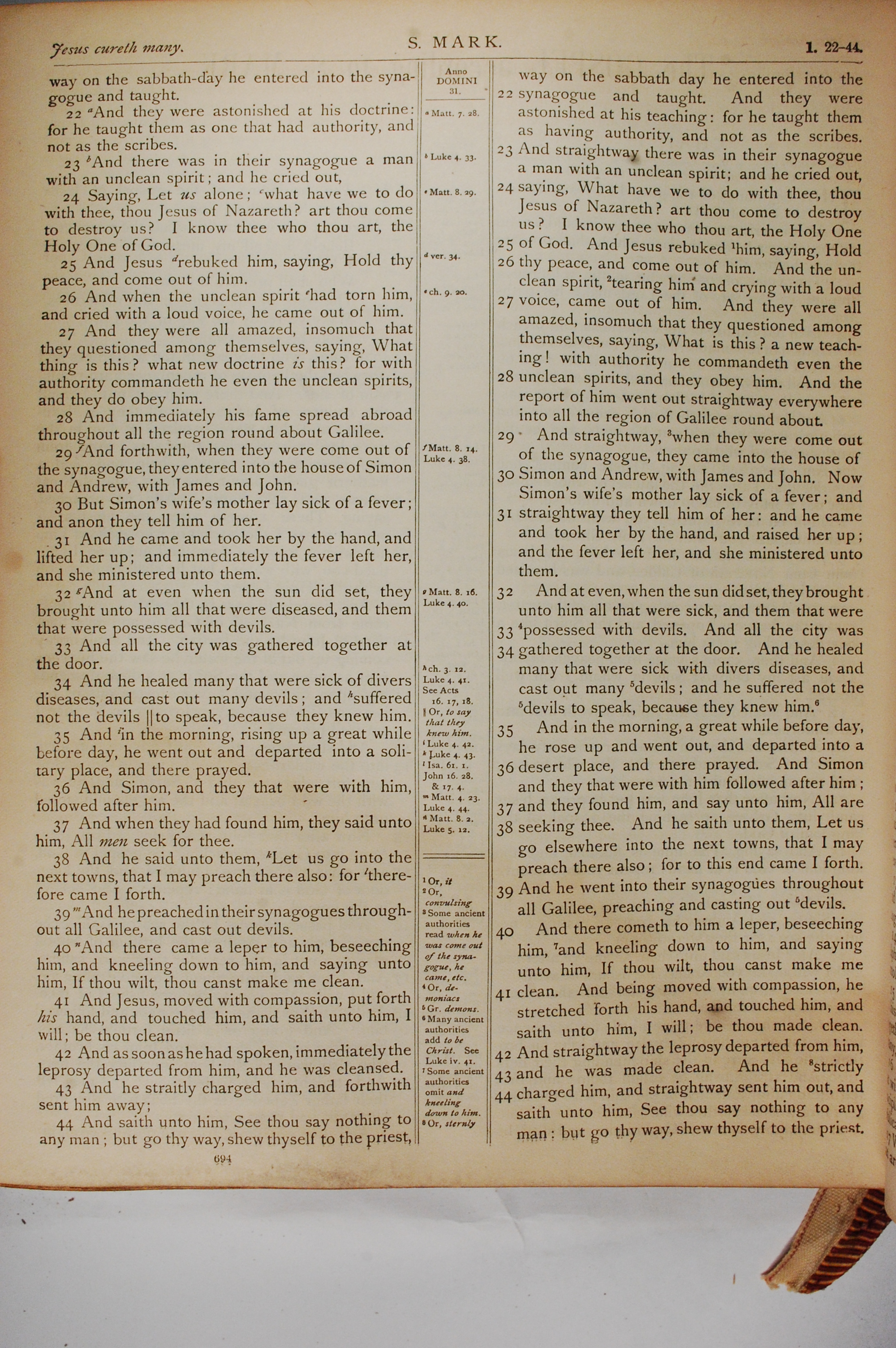 1884年The Holy Bible: Old and New Testaments 馬可福音 1 章 22 節到 1 章 44 節
