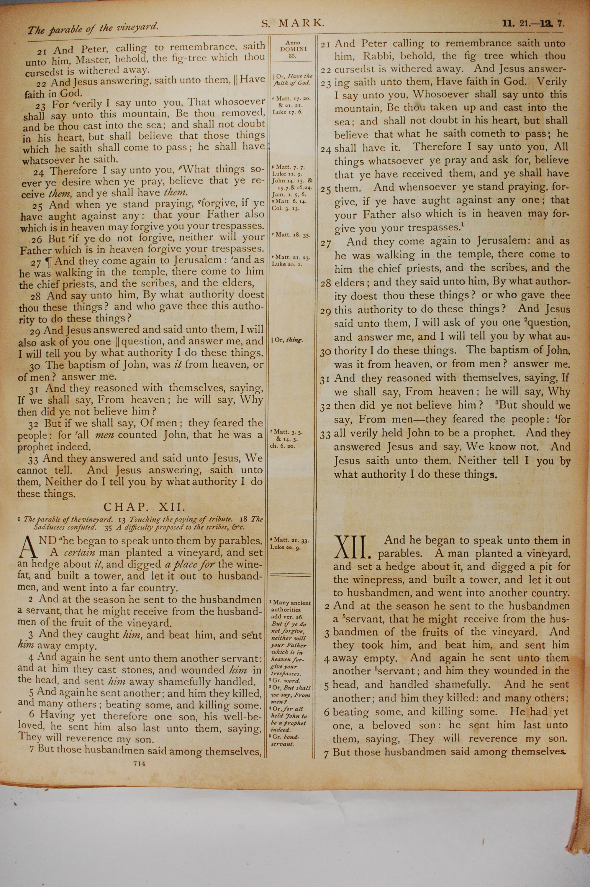 1884年The Holy Bible: Old and New Testaments 馬可福音 11 章 21 節到 12 章 7 節