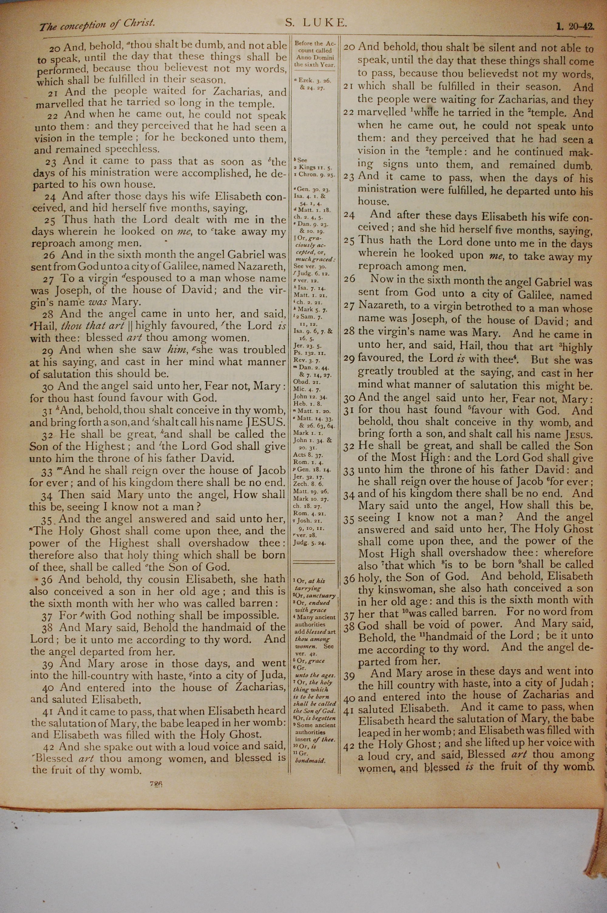 1884年The Holy Bible: Old and New Testaments 路加福音 1 章 20 節到 1 章 42 節