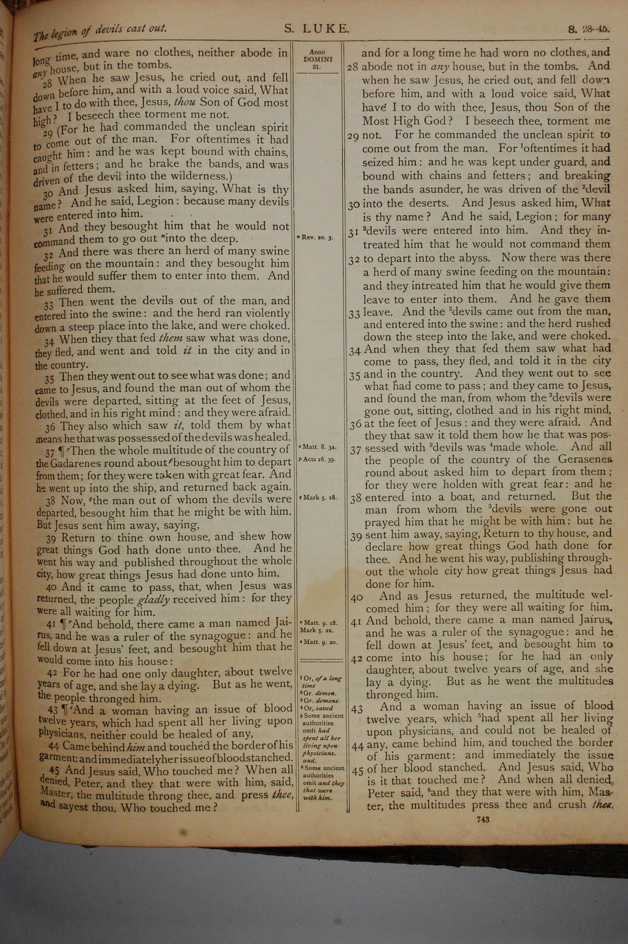 1884年The Holy Bible: Old and New Testaments 路加福音 8 章 28 節到 8 章 45 節
