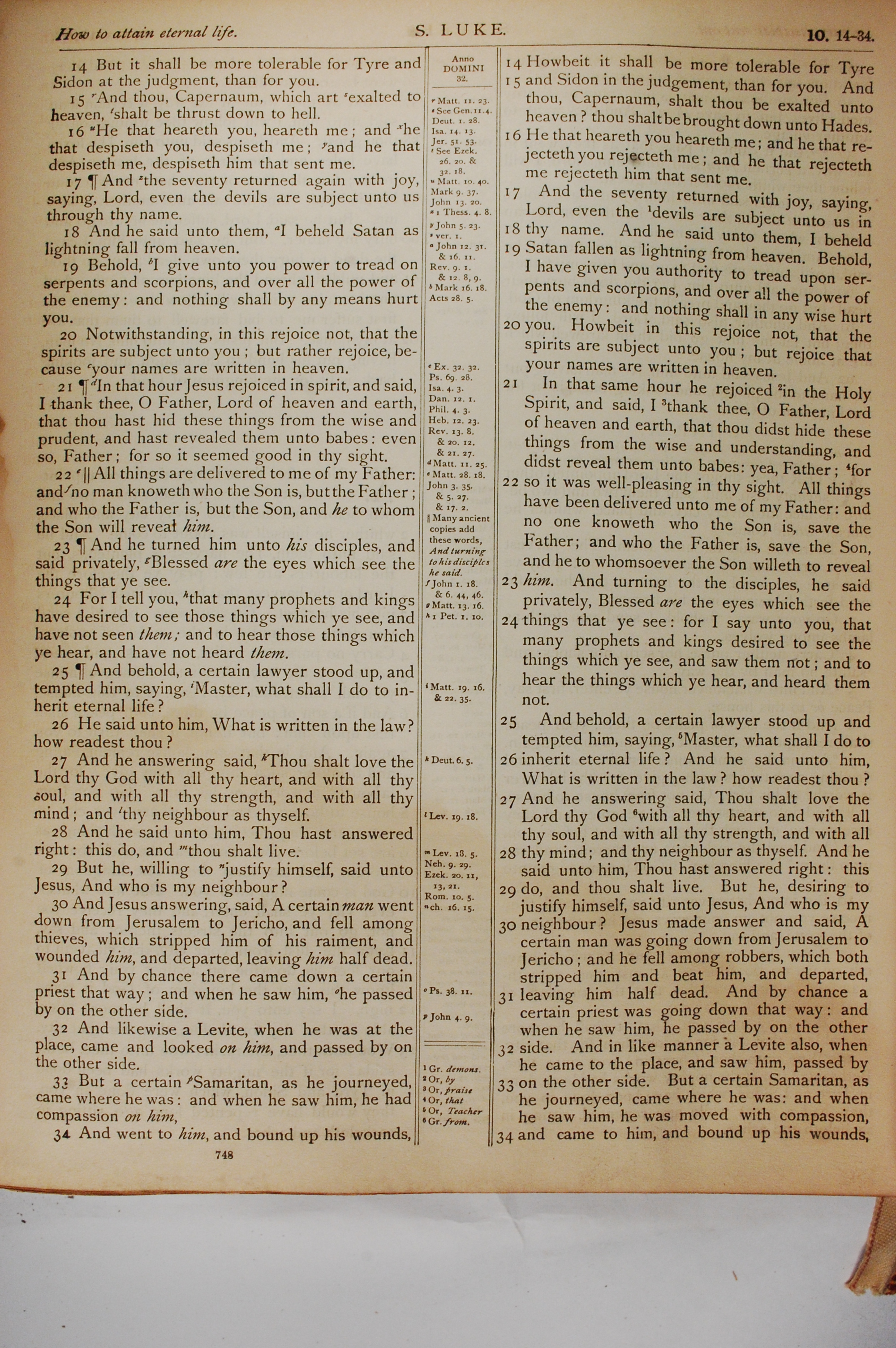 1884年The Holy Bible: Old and New Testaments 路加福音 10 章 14 節到 10 章 34 節