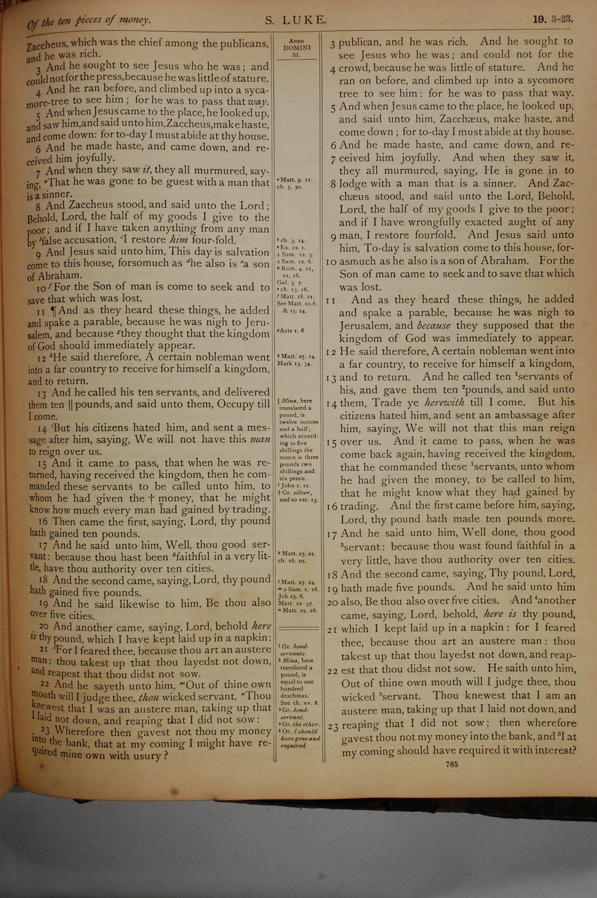 1884年The Holy Bible: Old and New Testaments 路加福音 19 章 3 節到 19 章 23 節