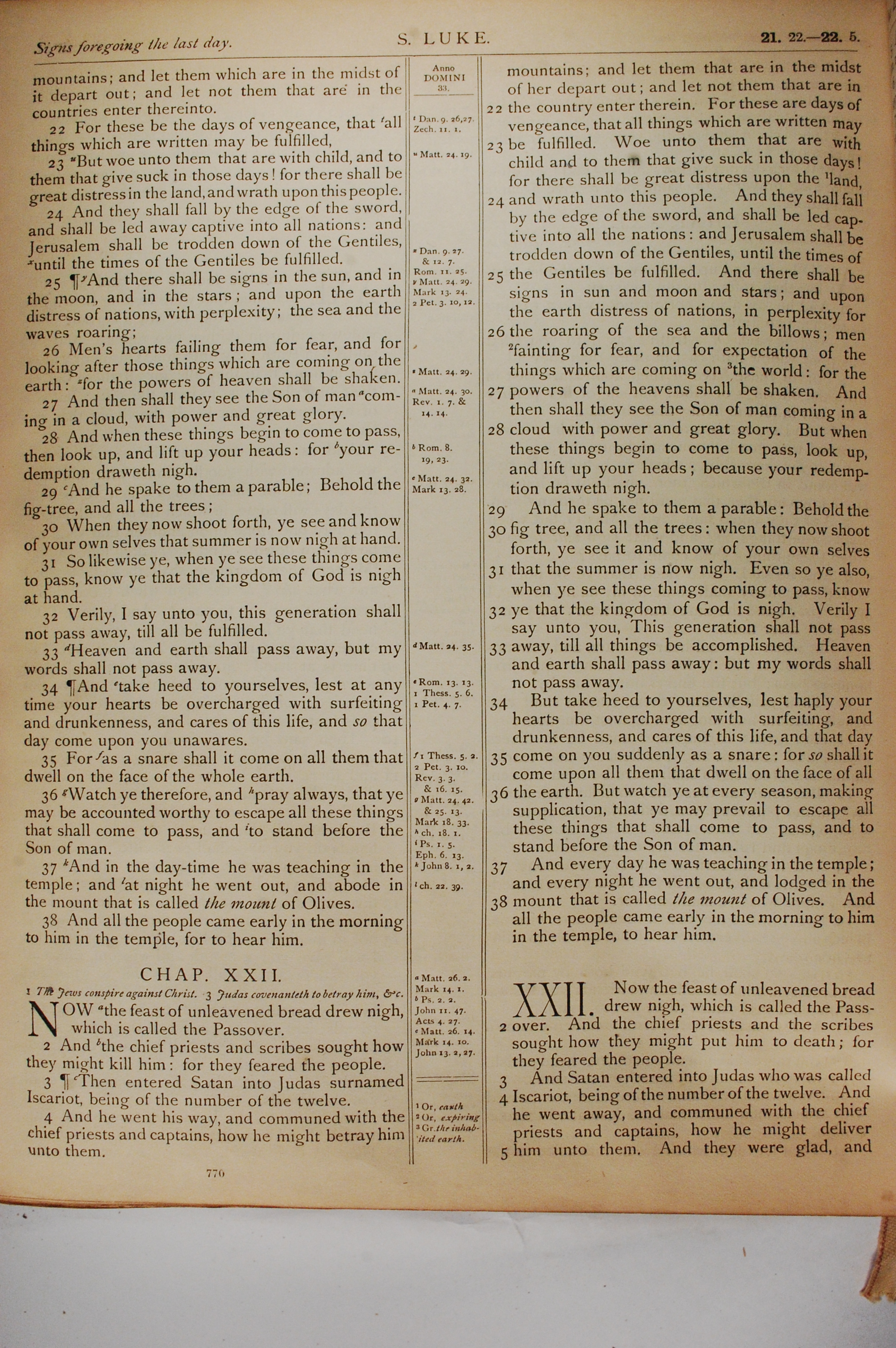 1884年The Holy Bible: Old and New Testaments 路加福音 21 章 22 節到 22 章 4 節