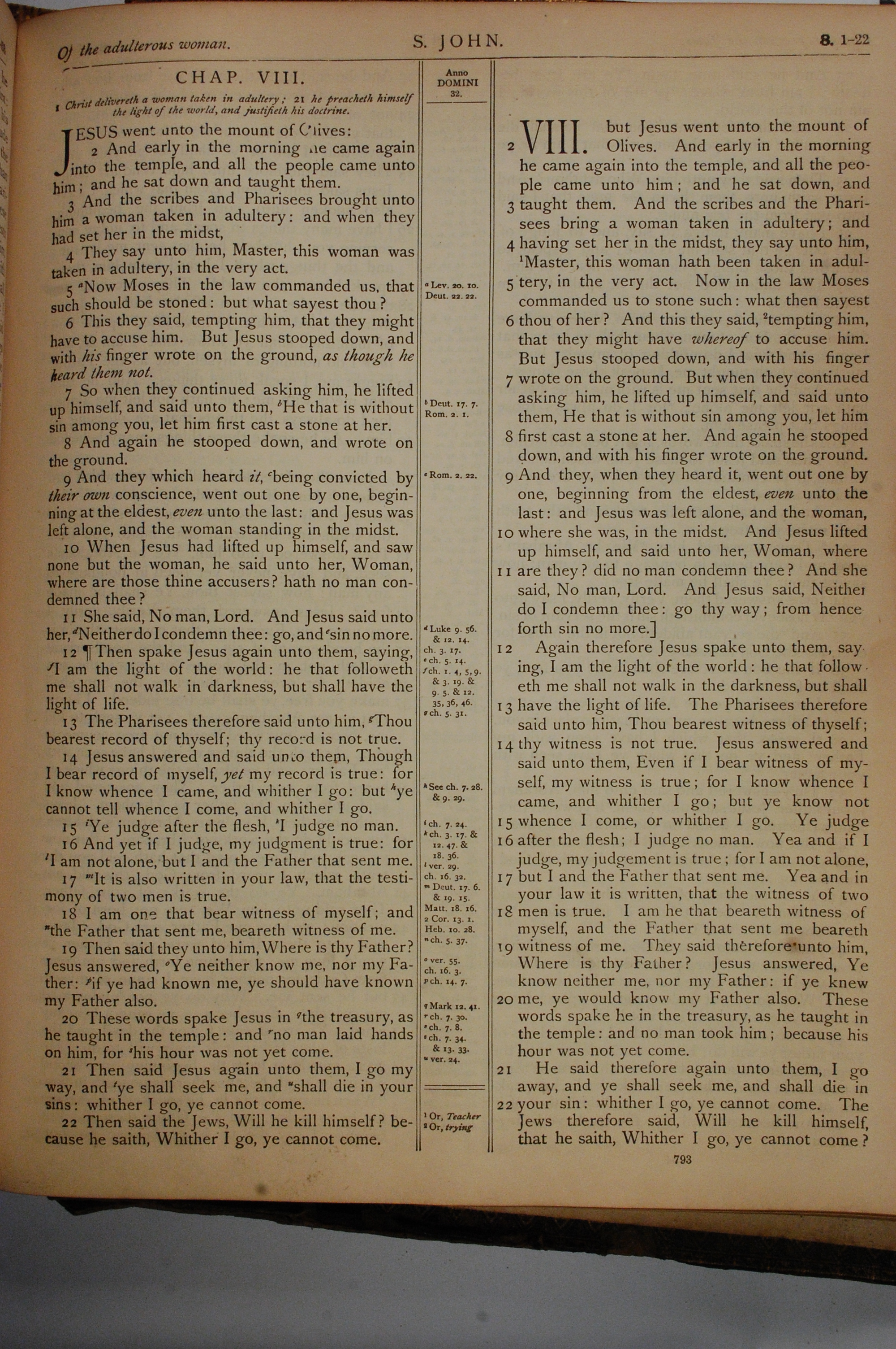 1884年The Holy Bible: Old and New Testaments 約翰福音 8 章 1 節到 8 章 22 節