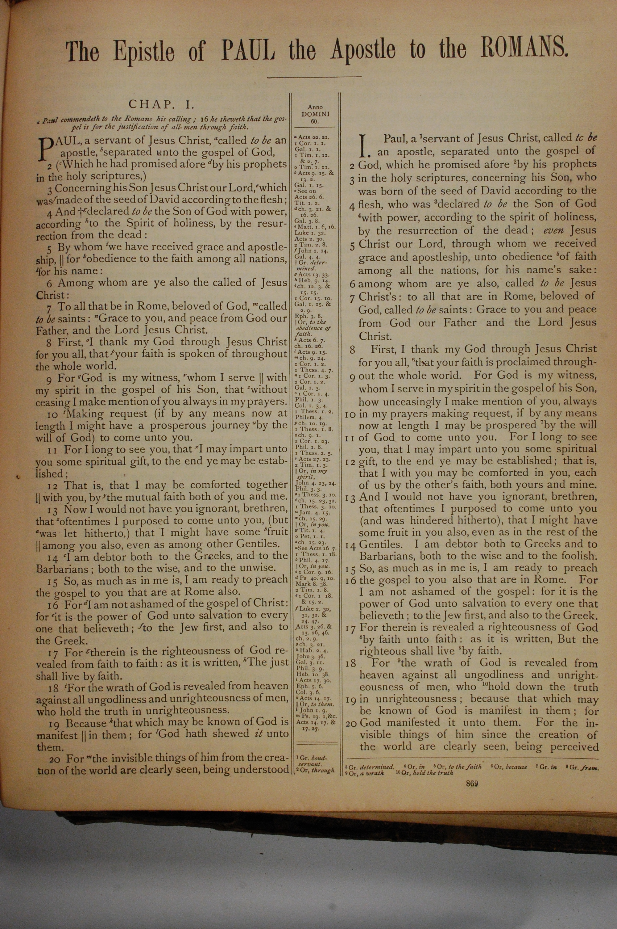 1884年The Holy Bible: Old and New Testaments 羅馬書 1 章 1 節到 1 章 20 節