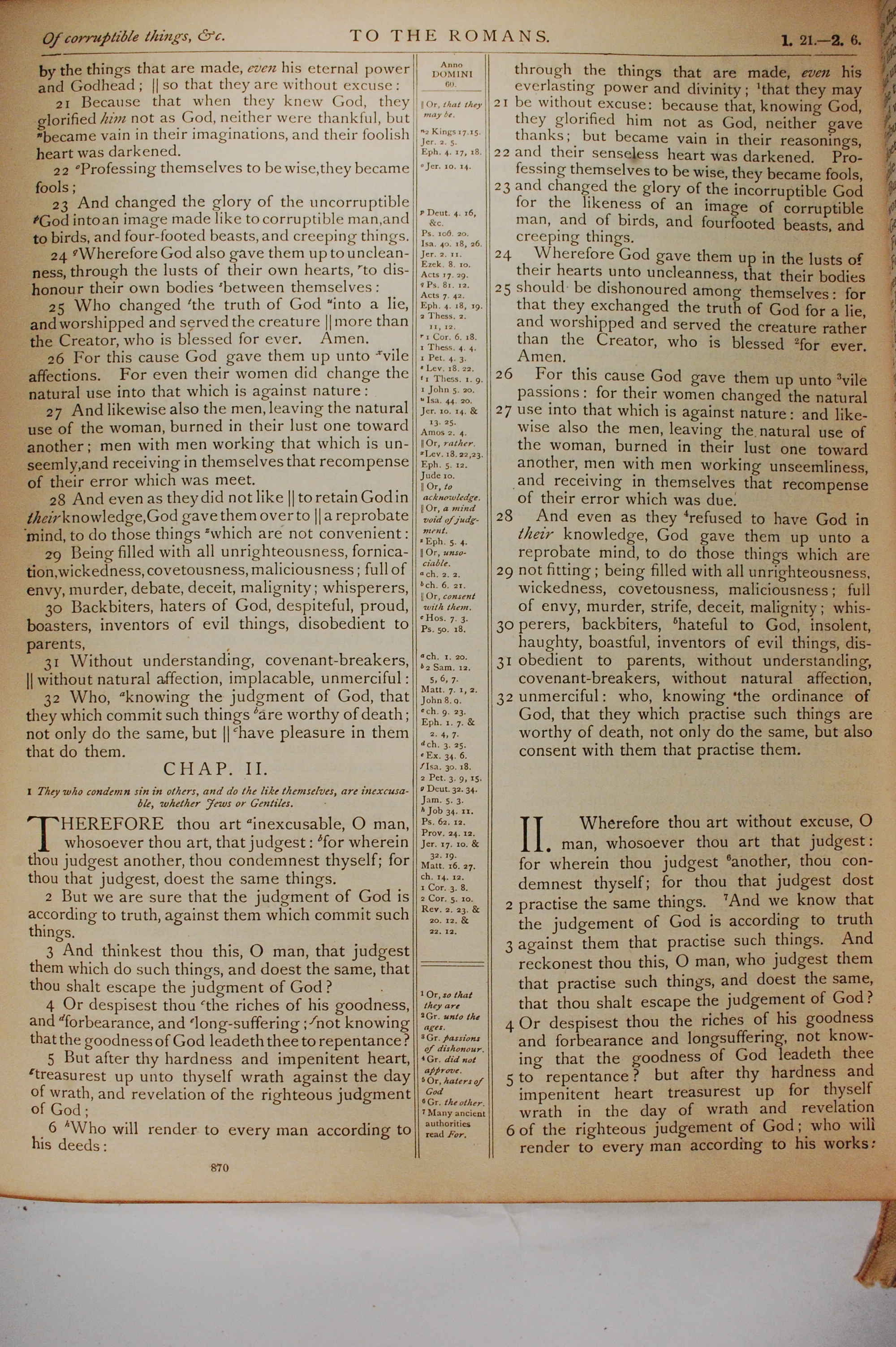 1884年The Holy Bible: Old and New Testaments 羅馬書 1 章 21 節到 2 章 6 節