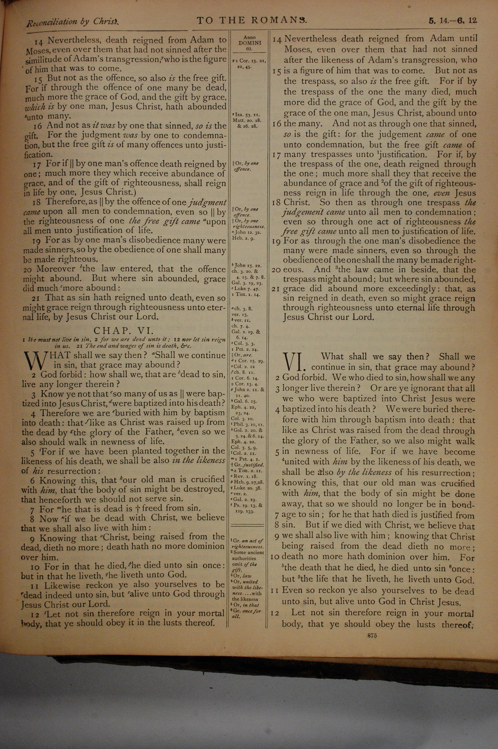 1884年The Holy Bible: Old and New Testaments 羅馬書 5 章 14 節到 6 章 12 節