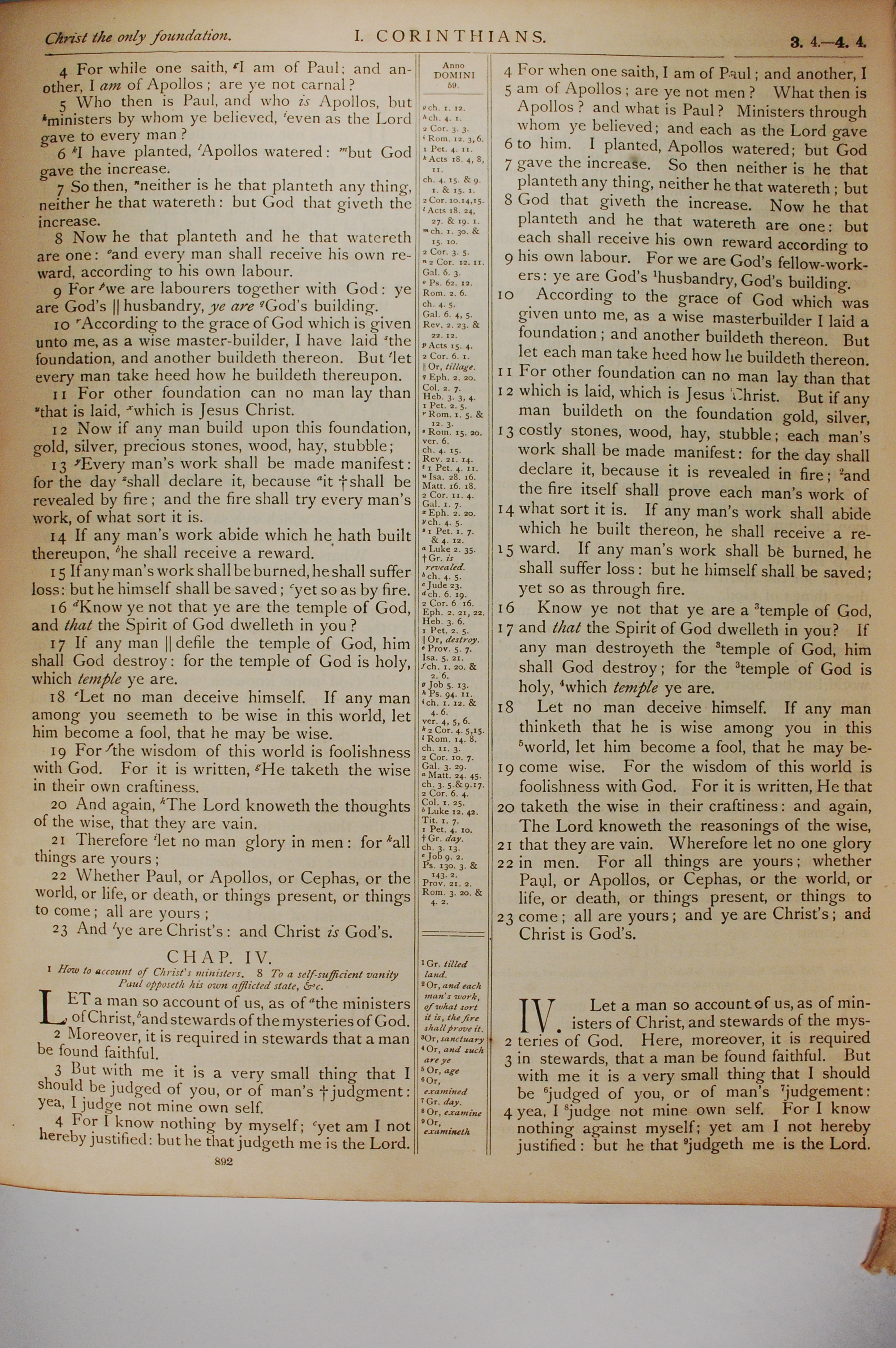 1884年The Holy Bible: Old and New Testaments 哥林多前書 3 章 4 節到 4 章 4 節