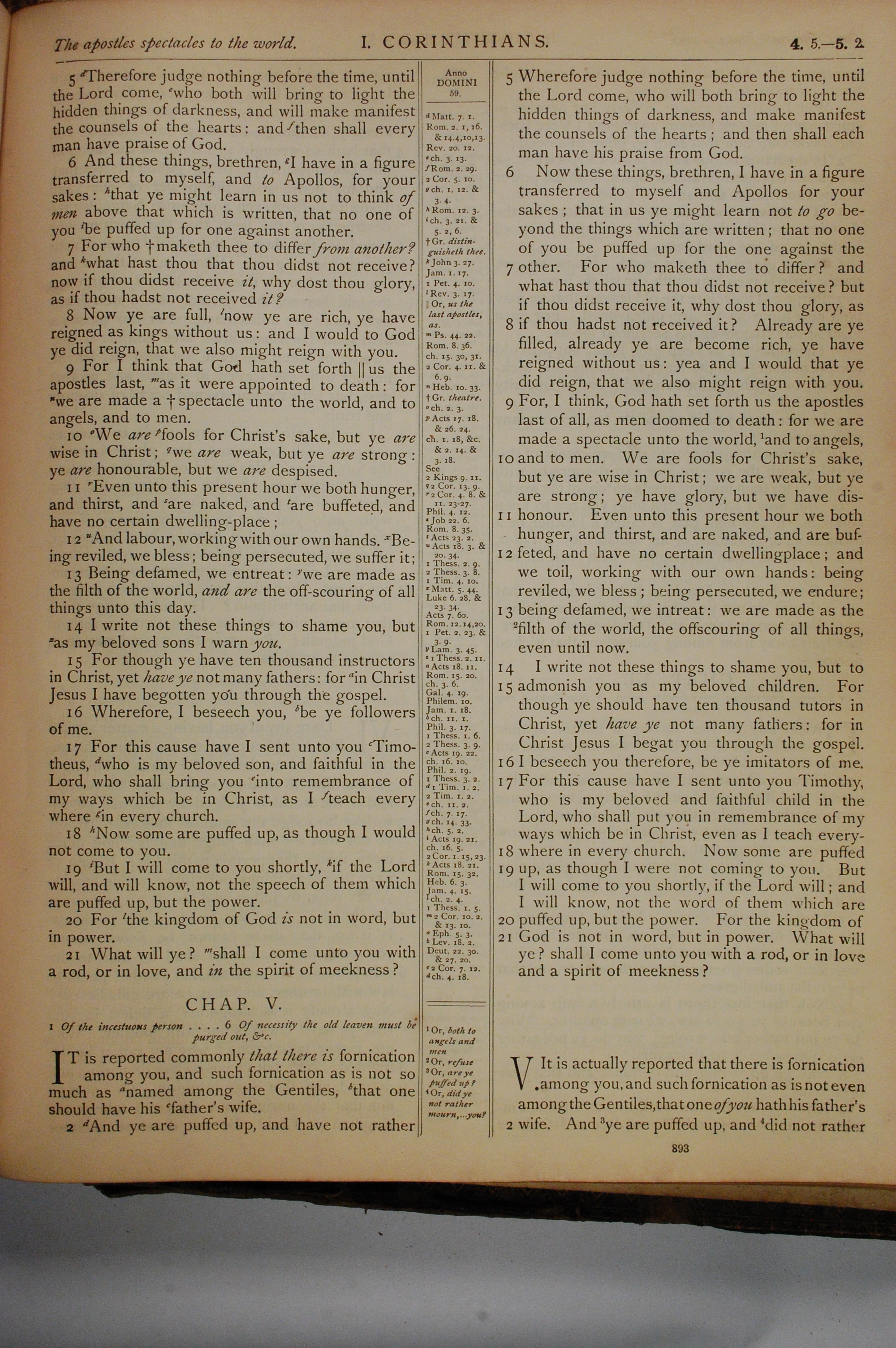 1884年The Holy Bible: Old and New Testaments 哥林多前書 4 章 5 節到 5 章 2 節