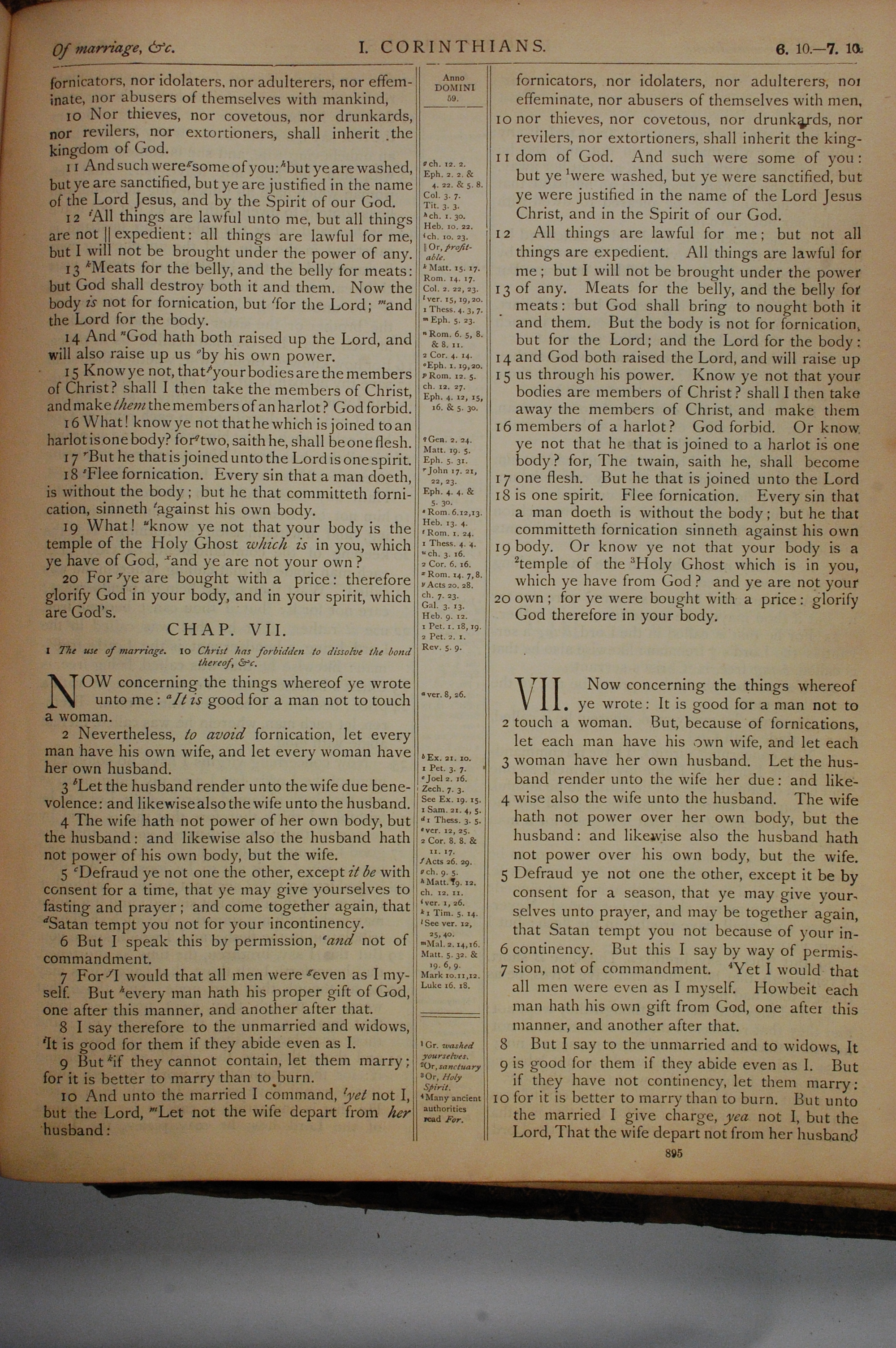1884年The Holy Bible: Old and New Testaments 哥林多前書 6 章 10 節到 7 章 10 節