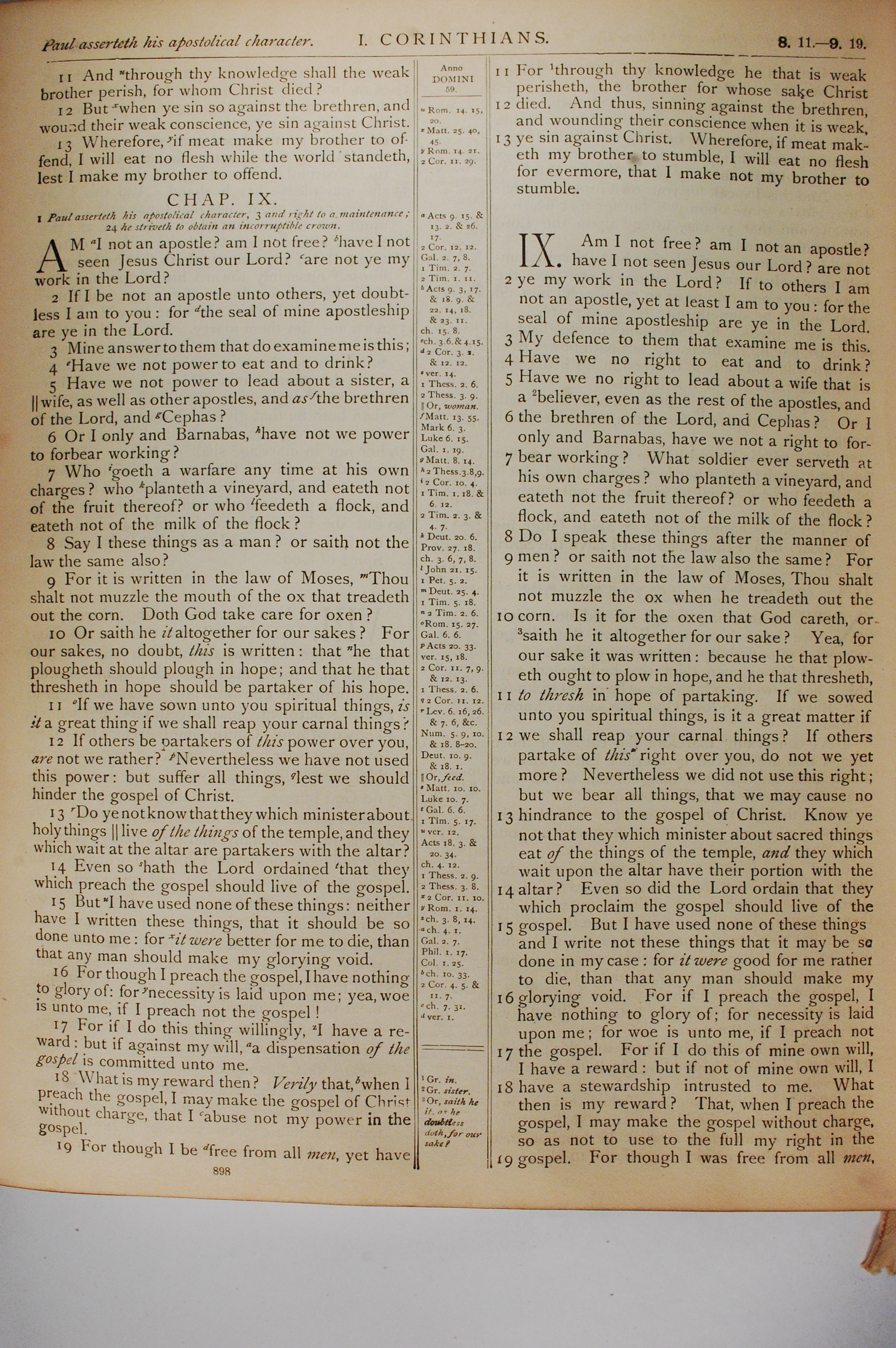 1884年The Holy Bible: Old and New Testaments 哥林多前書 8 章 11 節到 9 章 19 節