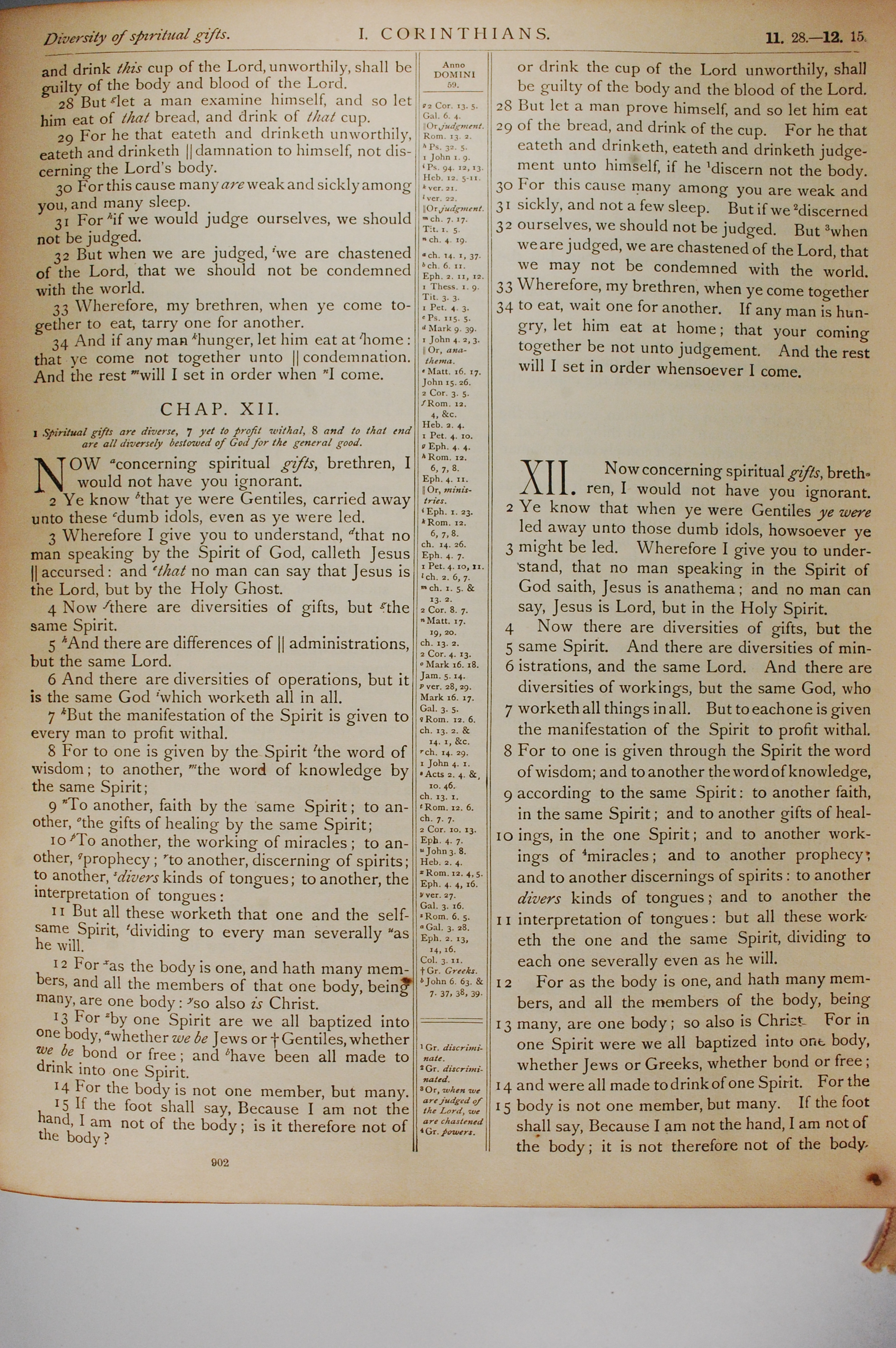 1884年The Holy Bible: Old and New Testaments 哥林多前書 11 章 28 節到 12 章 15 節