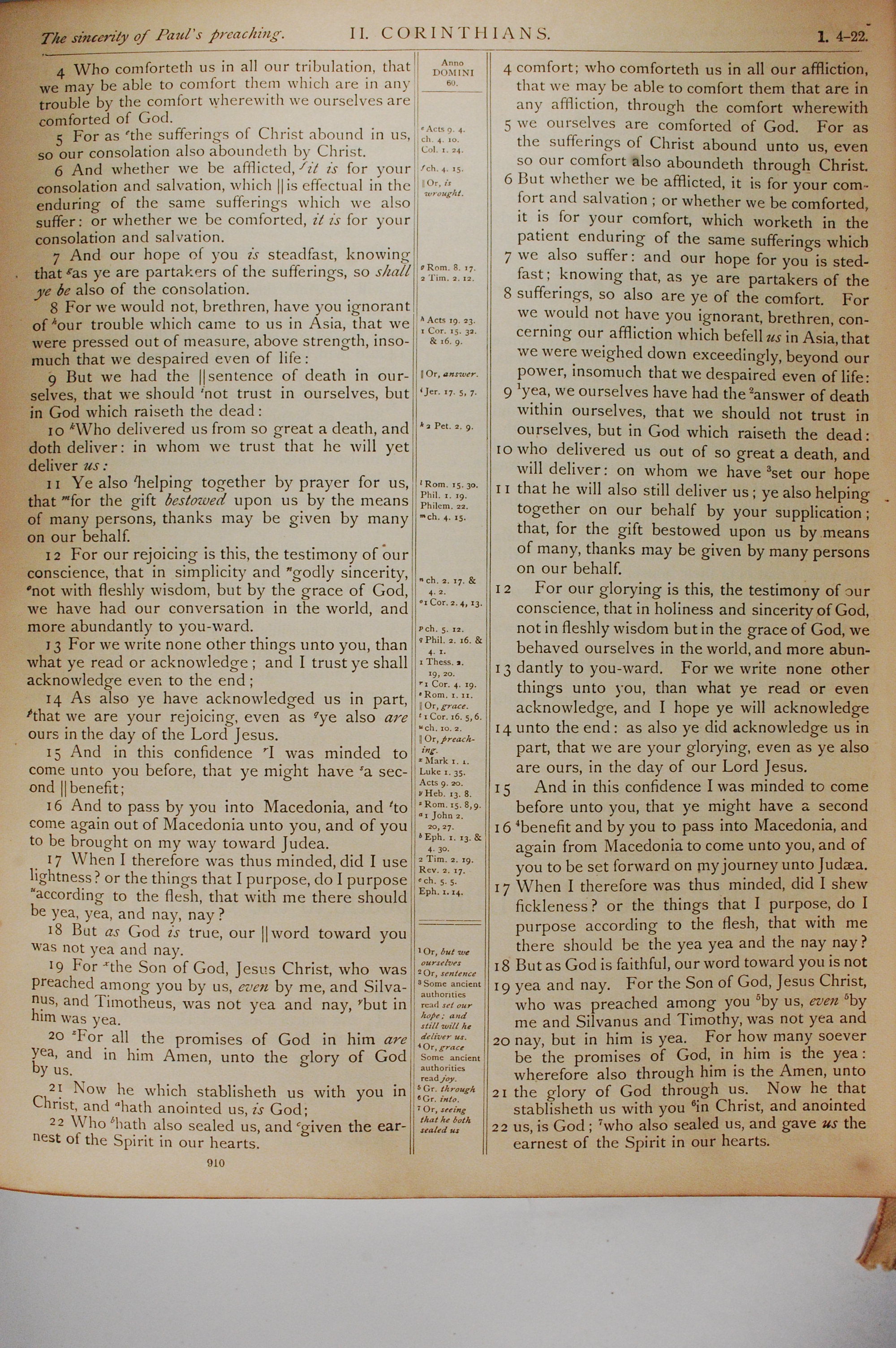 1884年The Holy Bible: Old and New Testaments 哥林多後書 1 章 4 節到 1 章 22 節