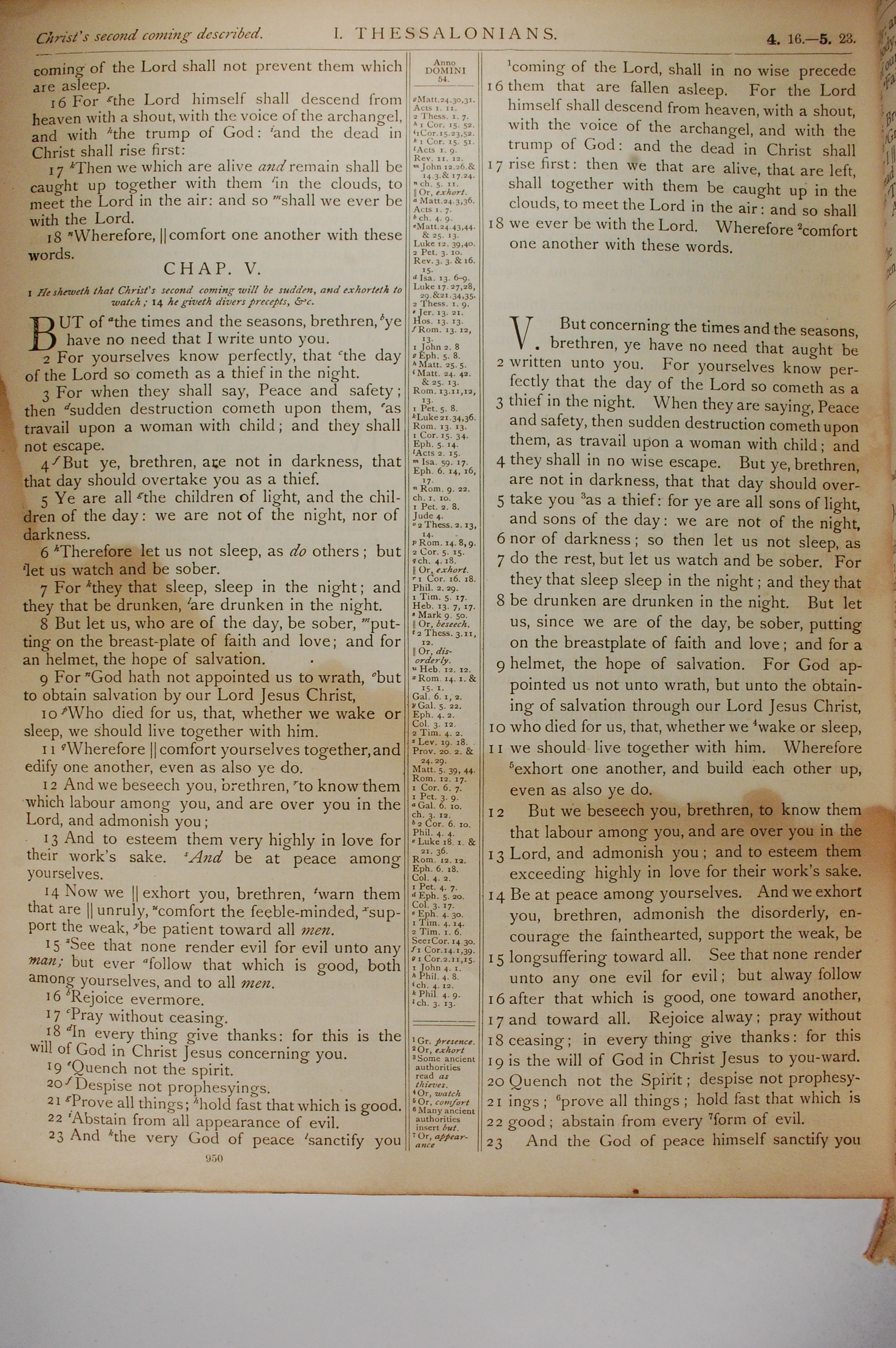 1884年The Holy Bible: Old and New Testaments 帖撒羅尼迦前書 4 章 16 節到 5 章 23 節