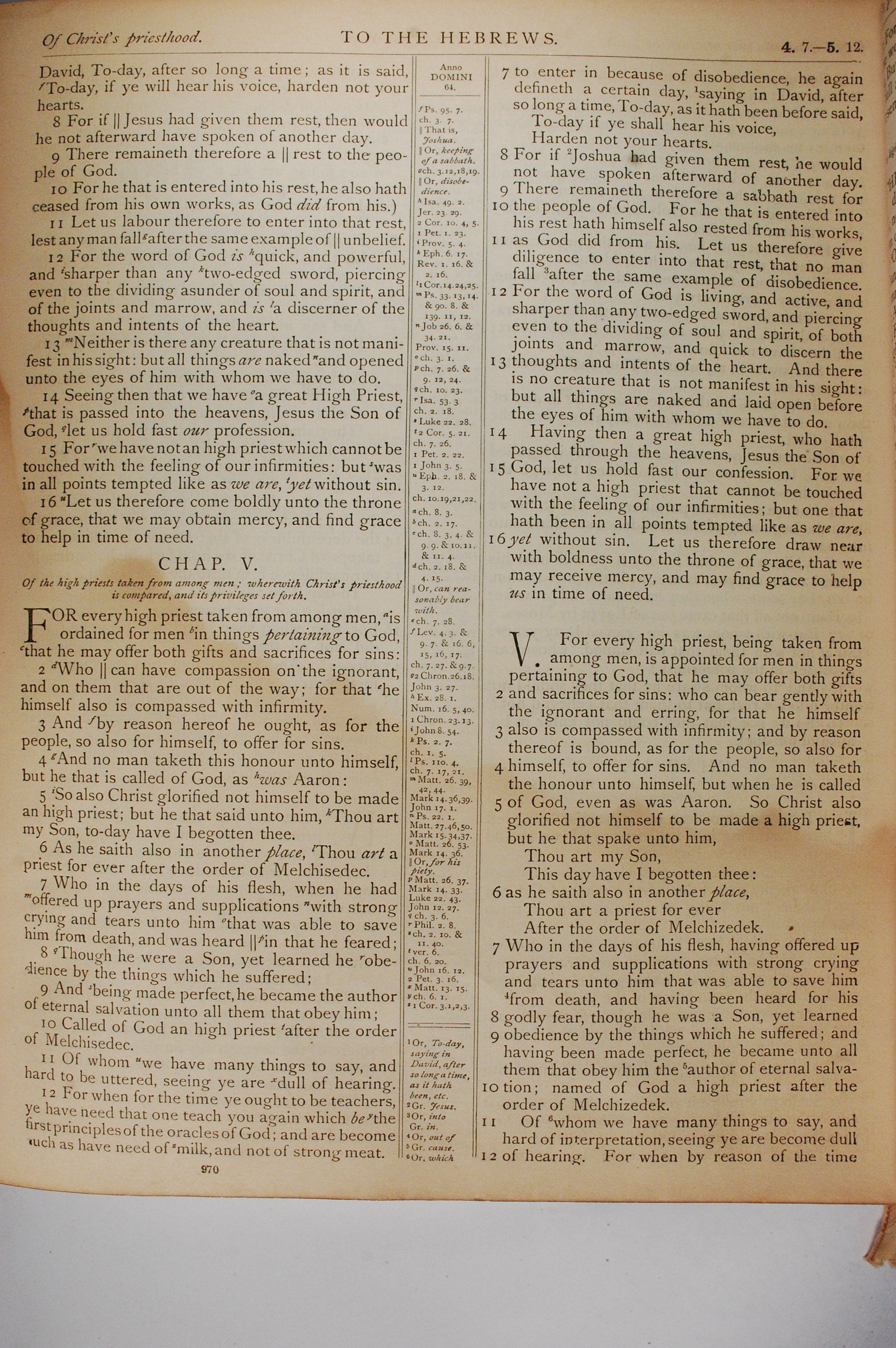 1884年The Holy Bible: Old and New Testaments 希伯來書 4 章 7 節到 5 章 12 節