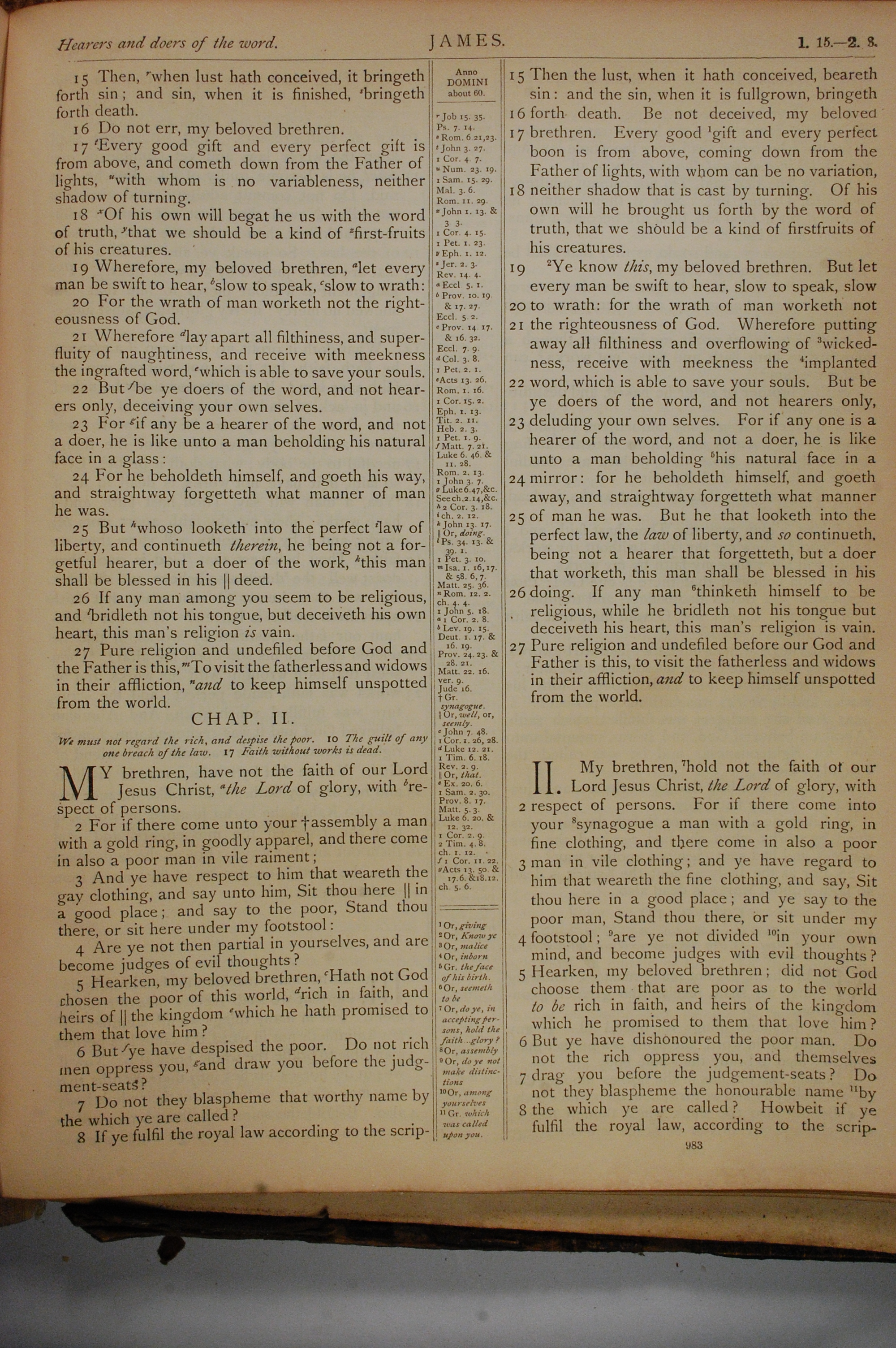 1884年The Holy Bible: Old and New Testaments 雅各書 1 章 15 節到 2 章 8 節