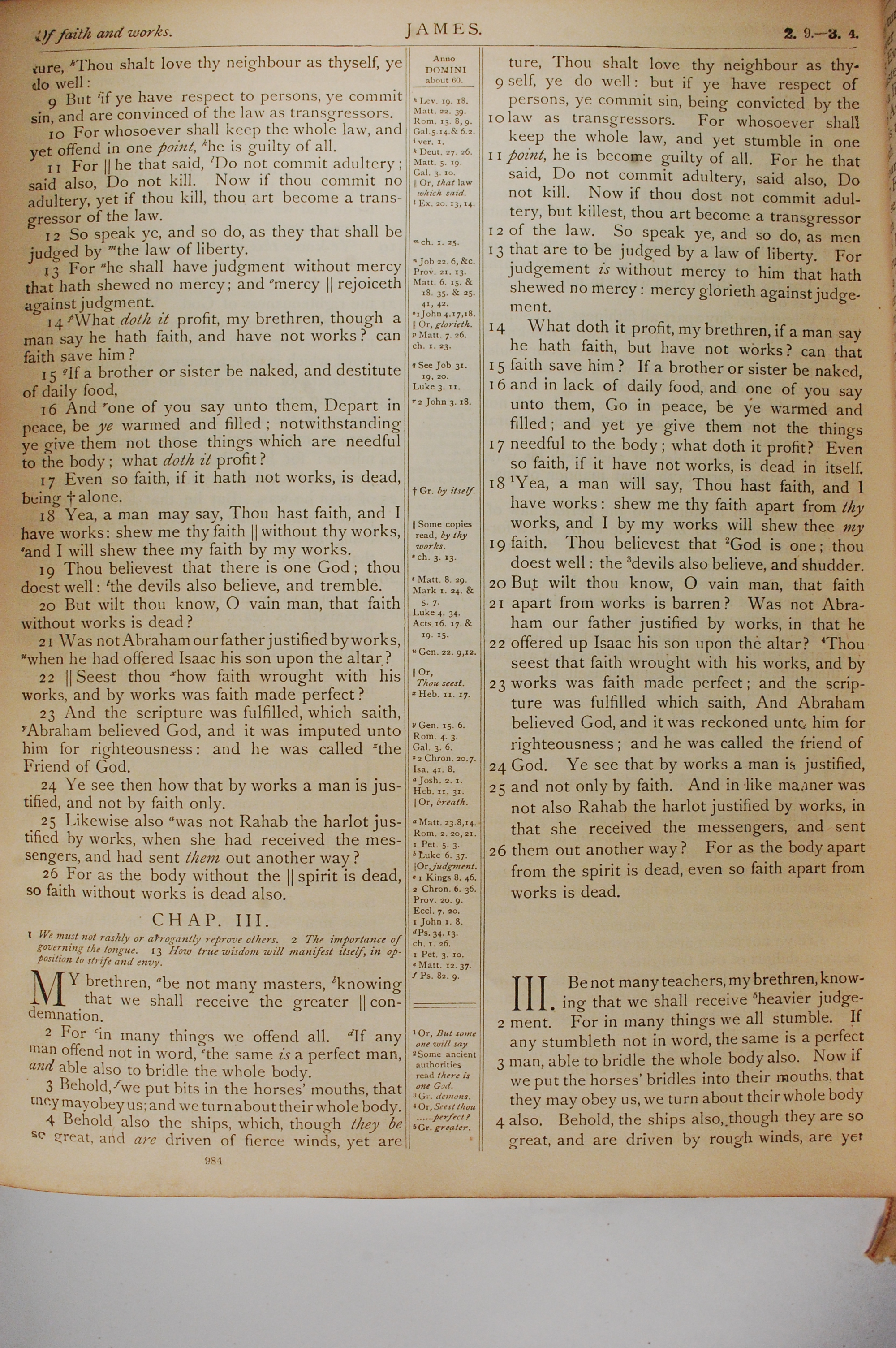 1884年The Holy Bible: Old and New Testaments 雅各書 2 章 9 節到 3 章 4 節