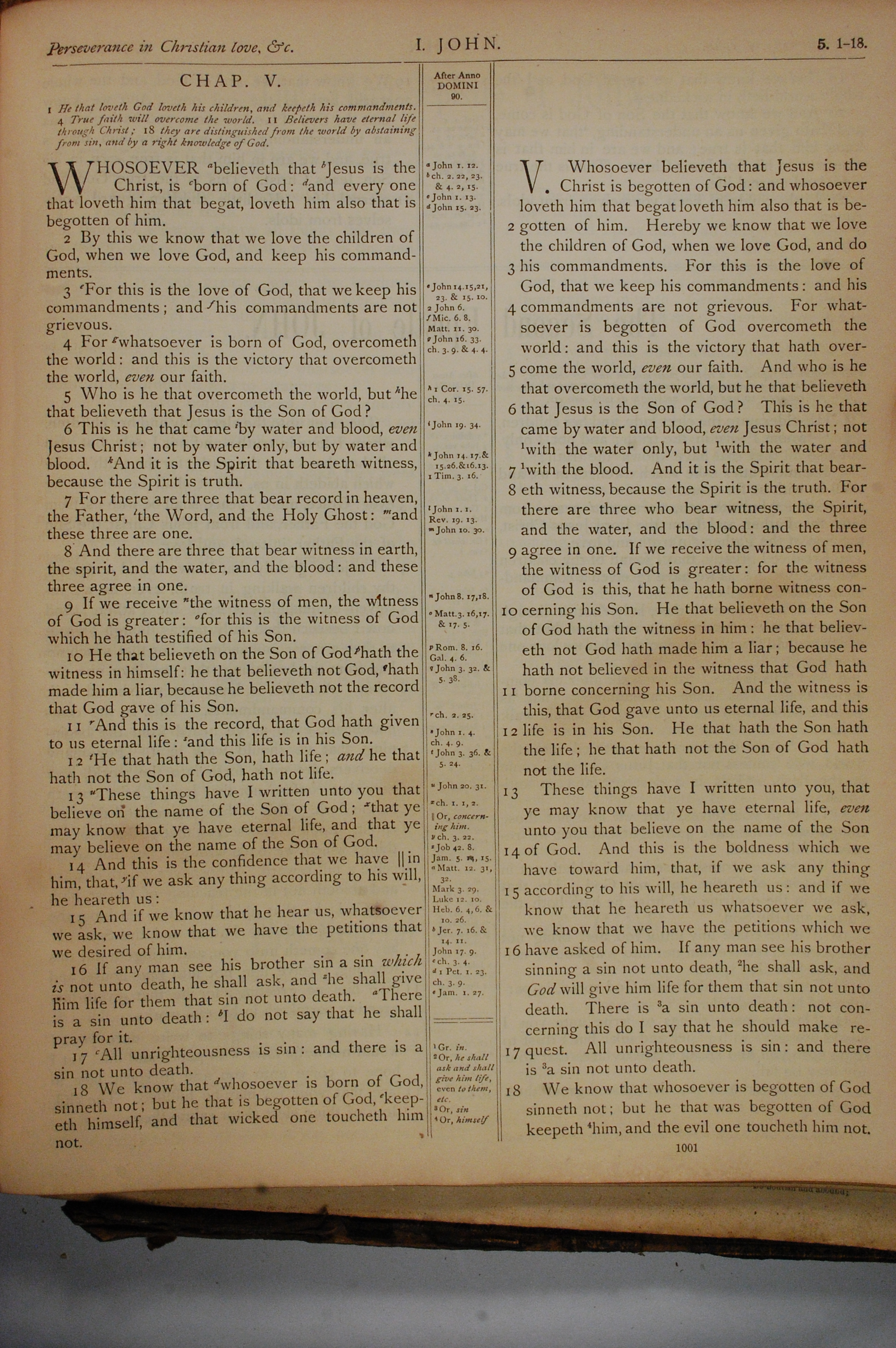 1884年The Holy Bible: Old and New Testaments 約翰一書 5 章 1 節到 5 章 18 節