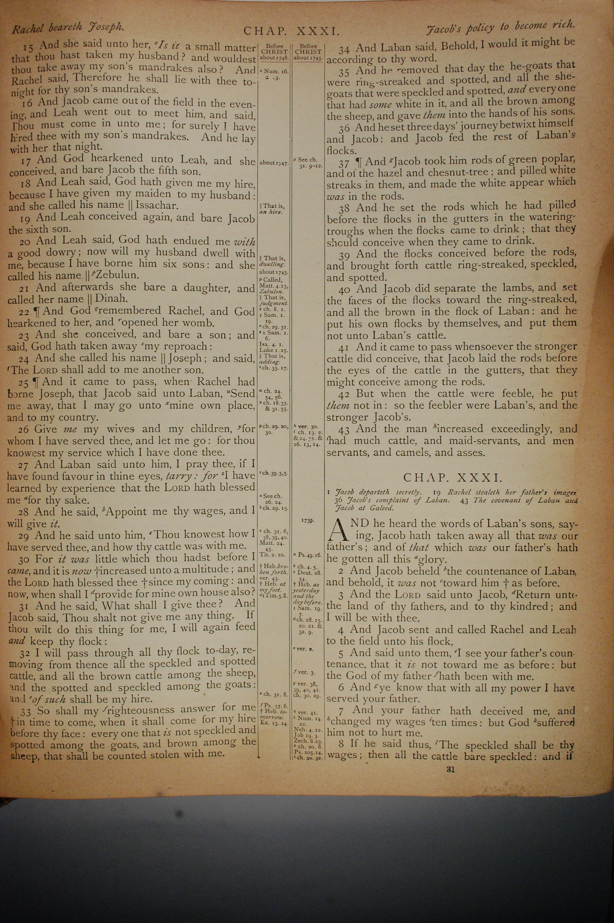 1884年The Holy Bible: Old and New Testaments 創世記 30 章 15 節到 31 章 8 節