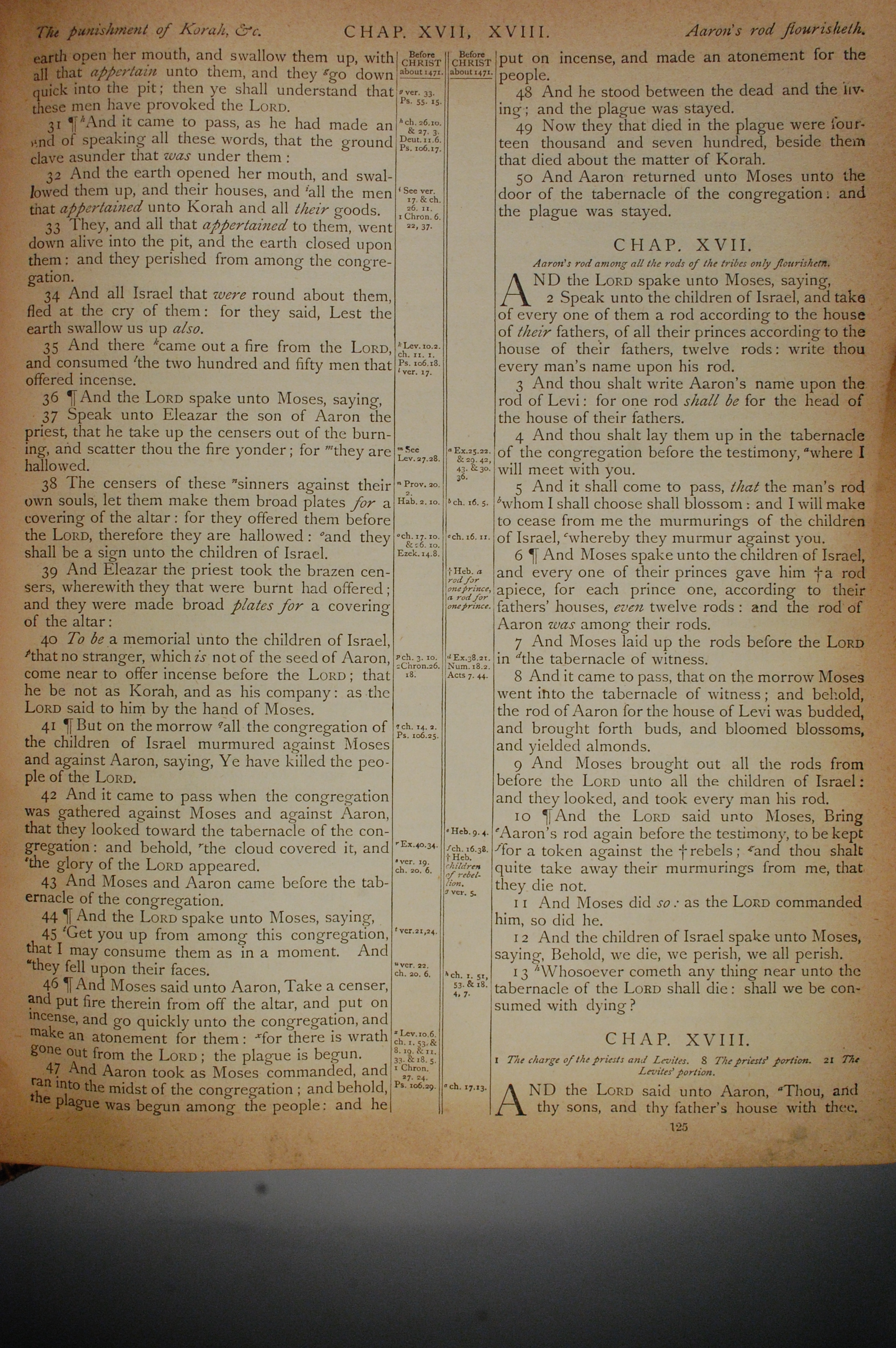 1884年The Holy Bible: Old and New Testaments 民數記 16 章 31 節到 18 章 1 節