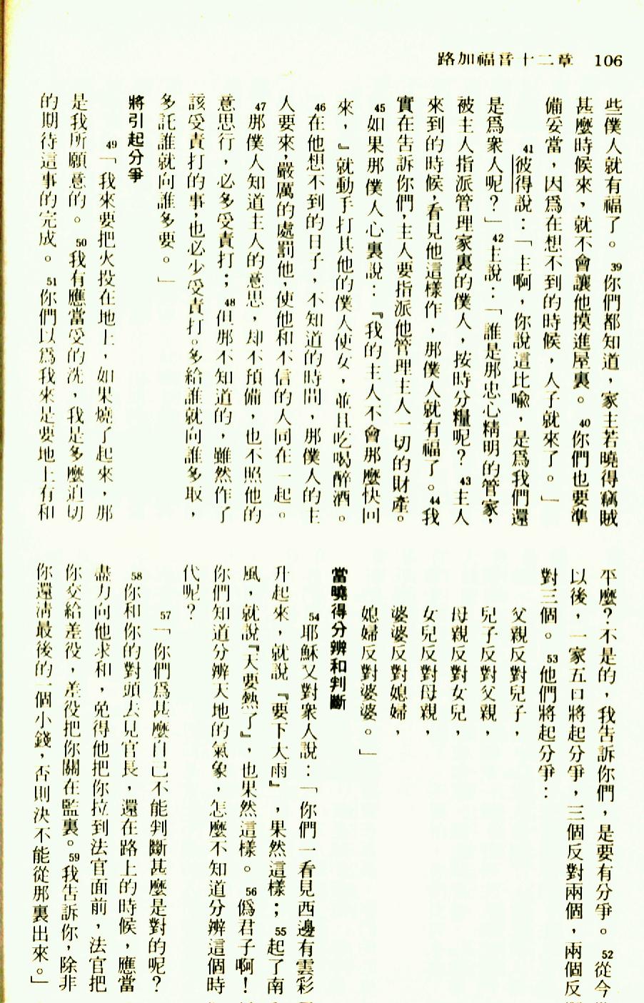 1976年聖經新譯本新約 路加福音 12 章 39 節到 12 章 59 節