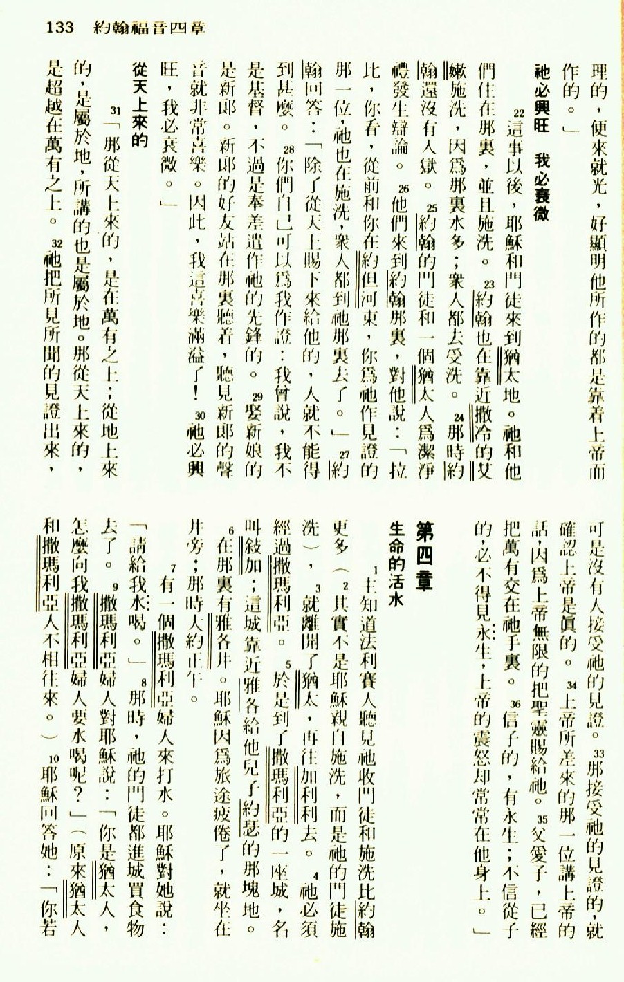1976年聖經新譯本新約 約翰福音 3 章 22 節到 4 章 10 節