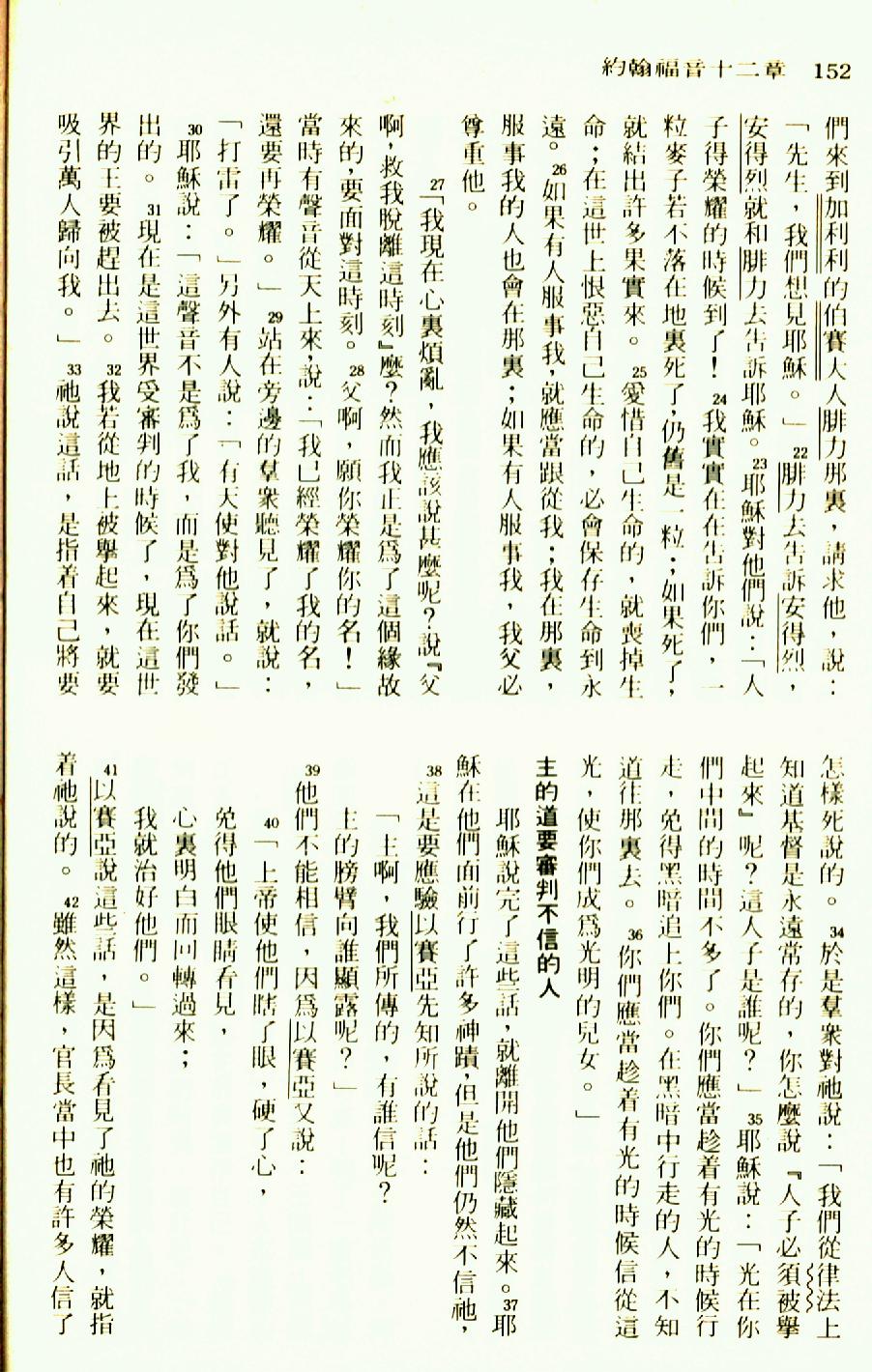 1976年聖經新譯本新約 約翰福音 12 章 22 節到 12 章 42 節