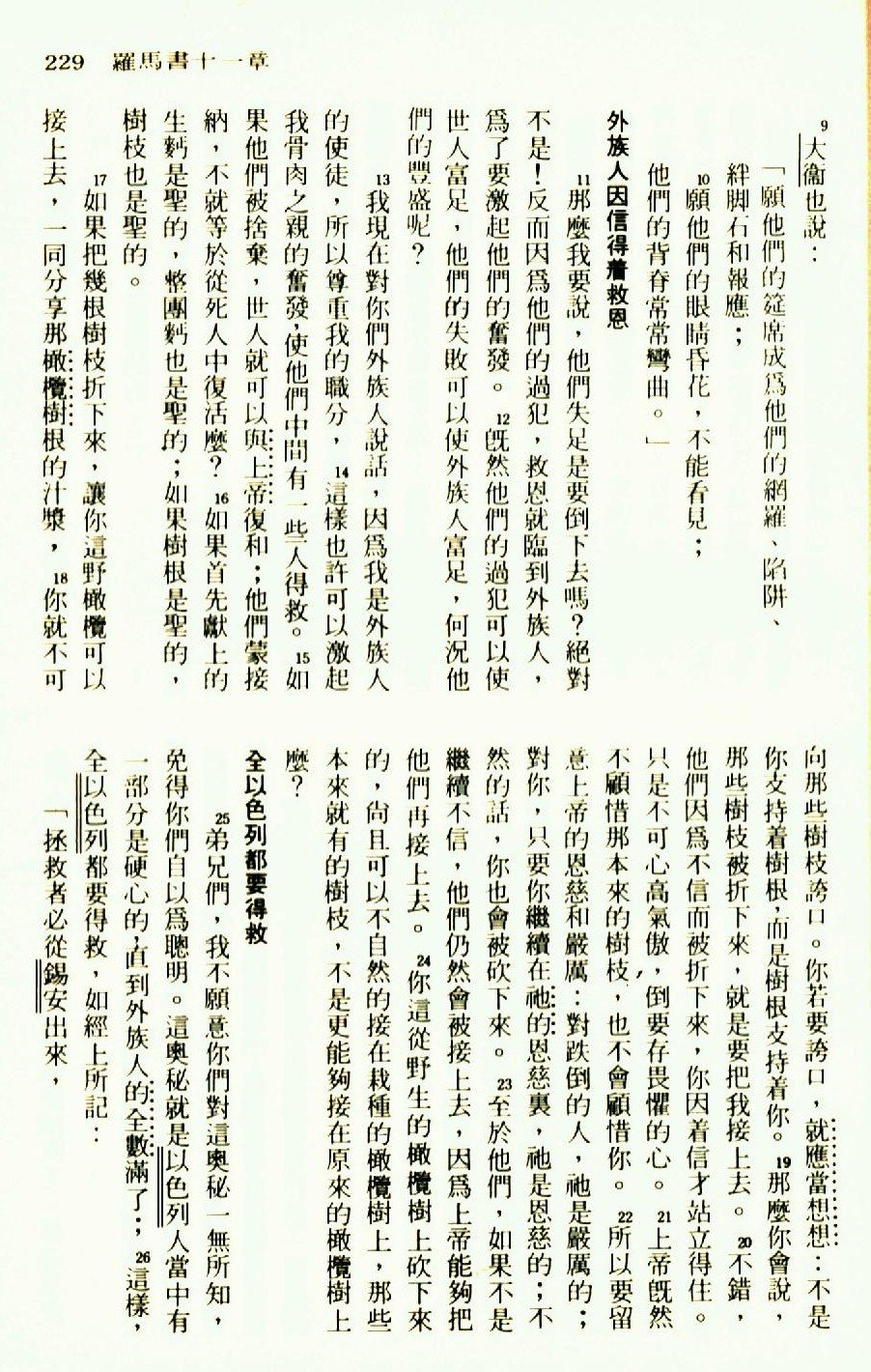 1976年聖經新譯本新約 羅馬書 11 章 9 節到 11 章 26 節
