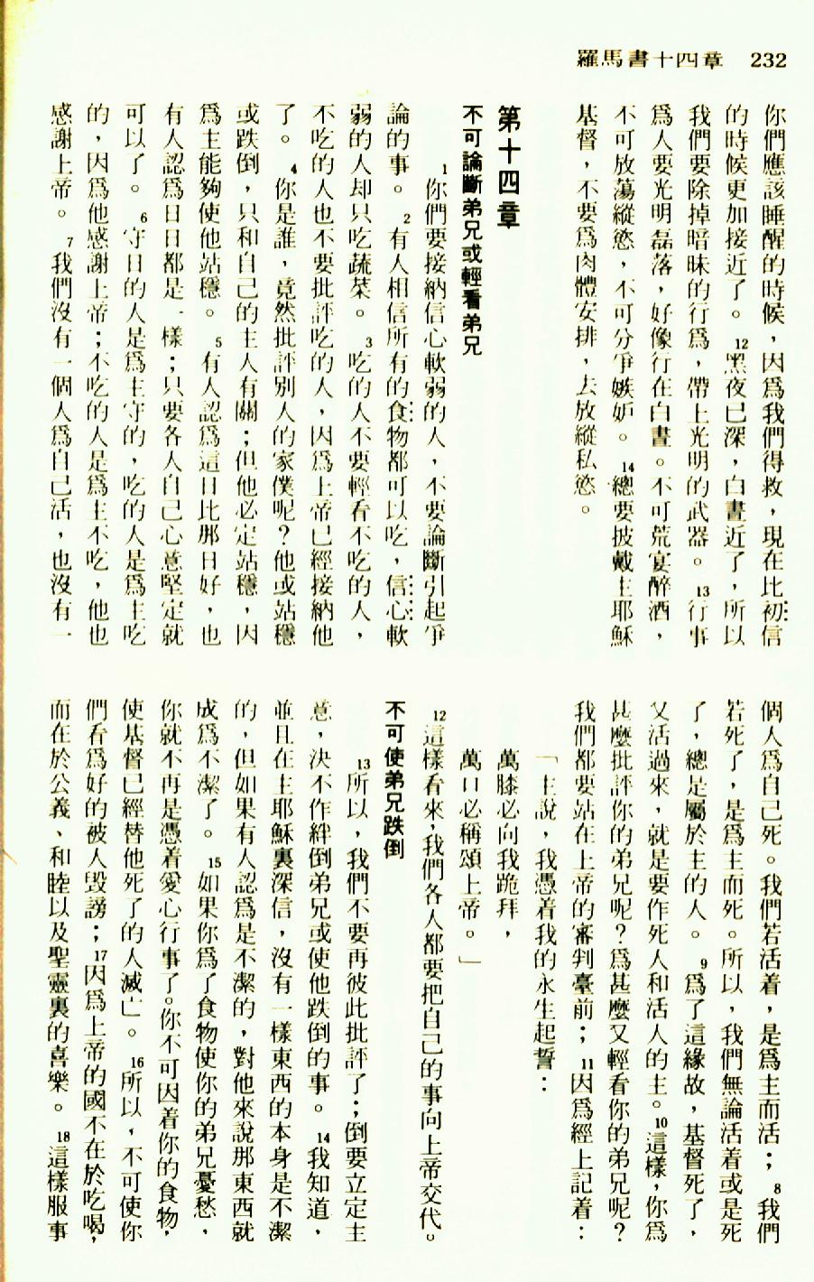 1976年聖經新譯本新約 羅馬書 13 章 14 節到 14 章 18 節
