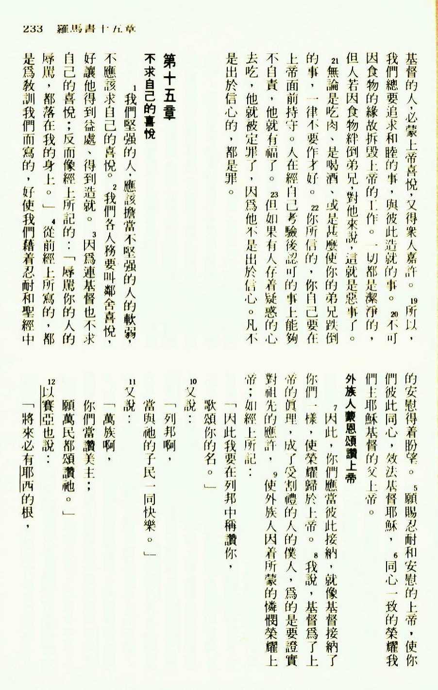 1976年聖經新譯本新約 羅馬書 14 章 19 節到 15 章 12 節