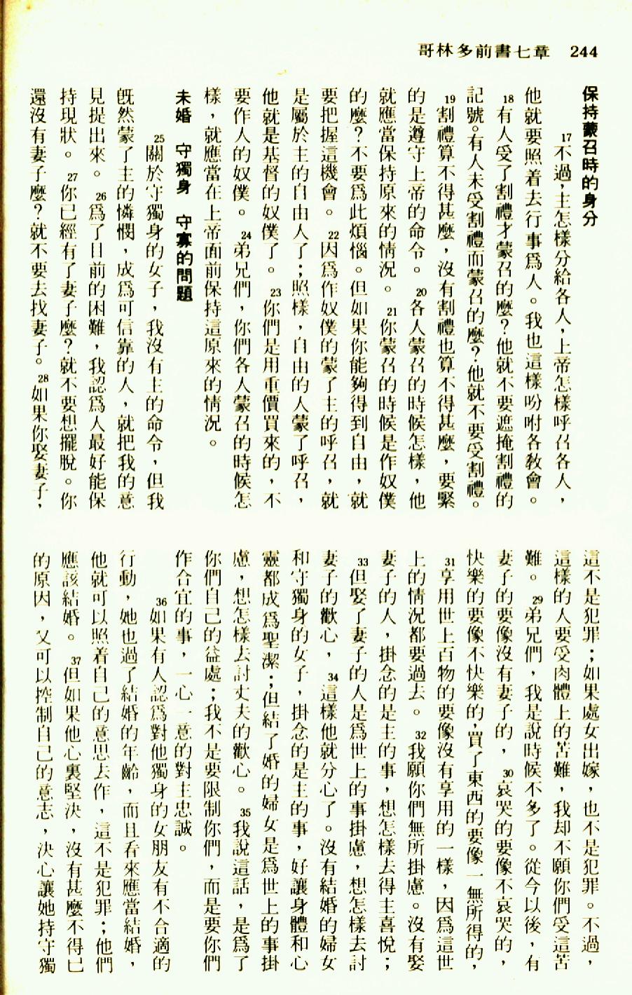 1976年聖經新譯本新約 哥林多前書 7 章 17 節到 7 章 37 節