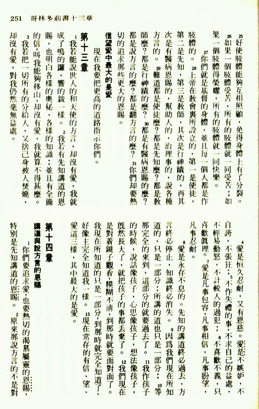 1976年聖經新譯本新約 哥林多前書 12 章 25 節到 14 章 2 節