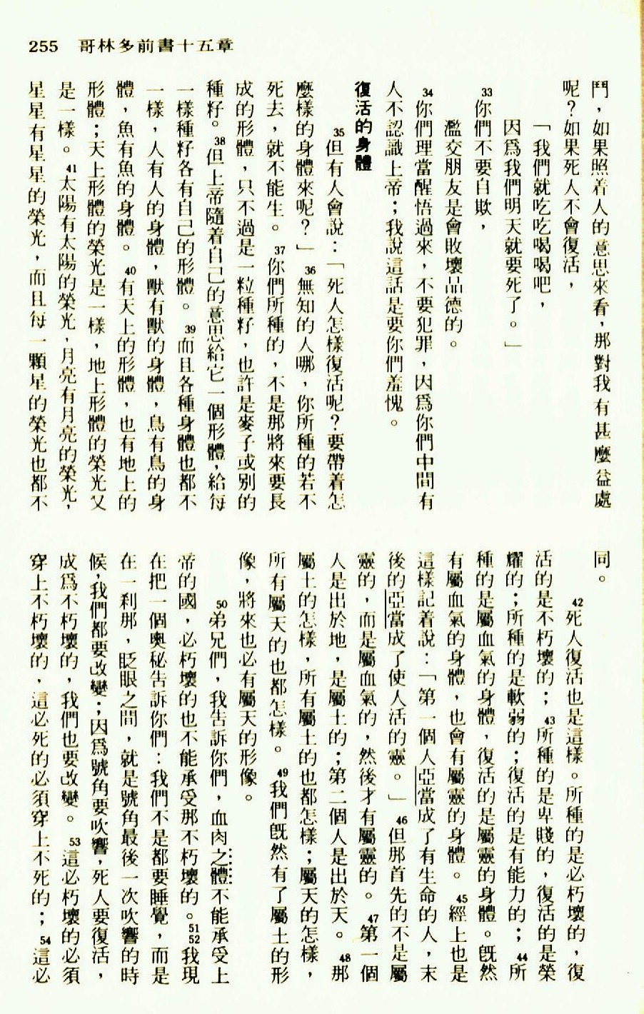 1976年聖經新譯本新約 哥林多前書 15 章 33 節到 15 章 54 節