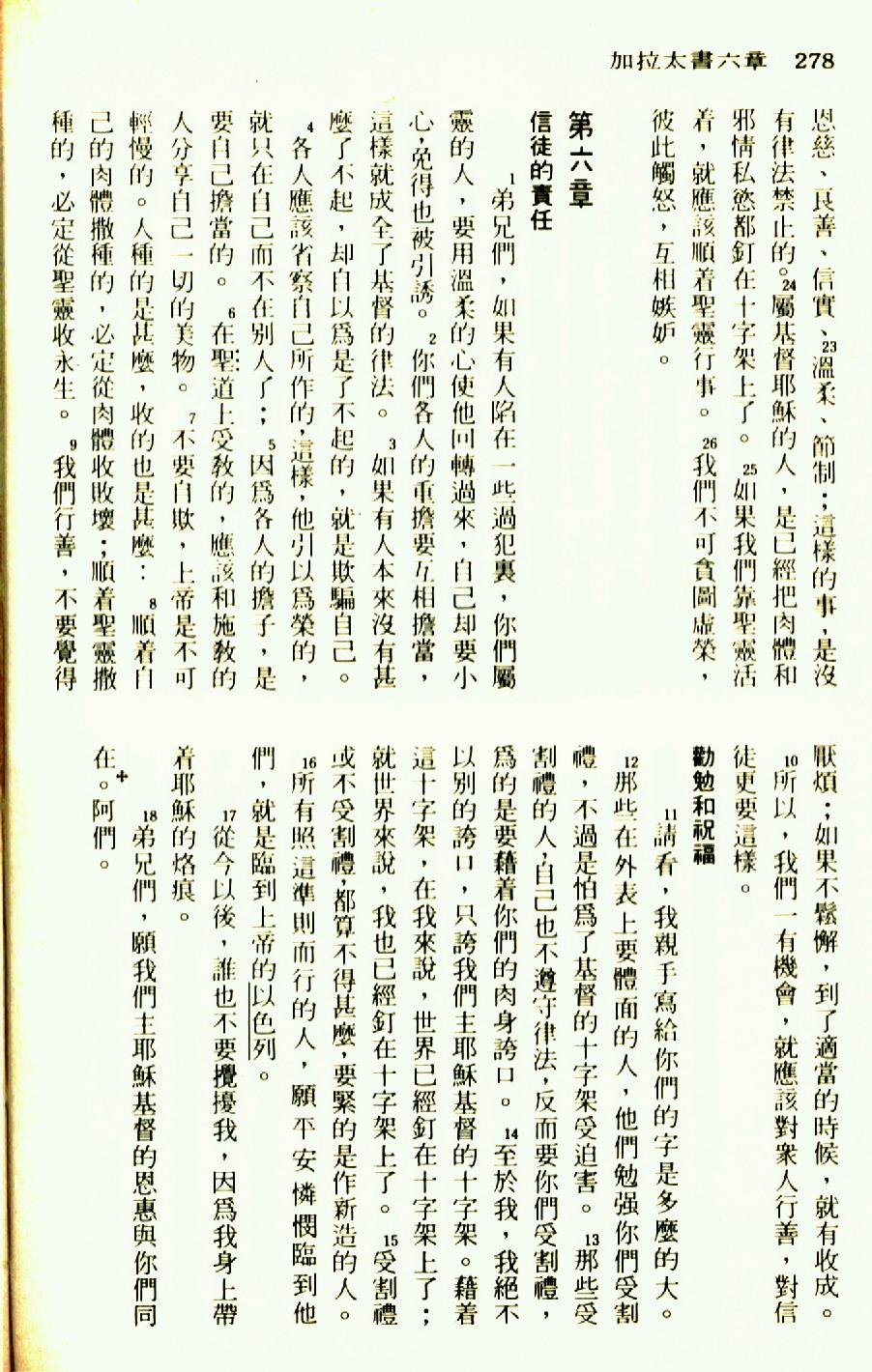 1976年聖經新譯本新約 加拉太書 5 章 22 節到 6 章 18 節