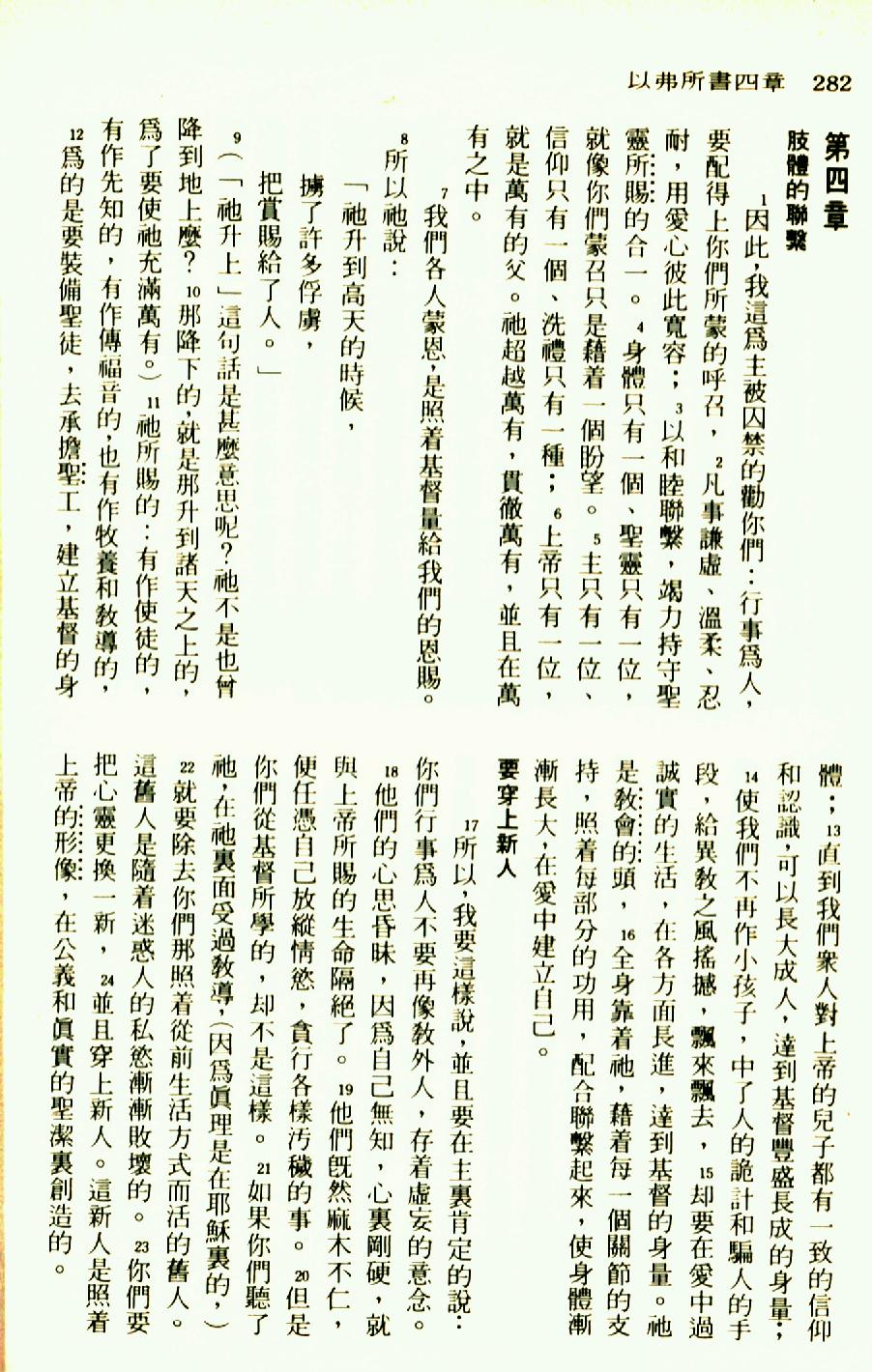 1976年聖經新譯本新約 以弗所書 4 章 1 節到 4 章 24 節